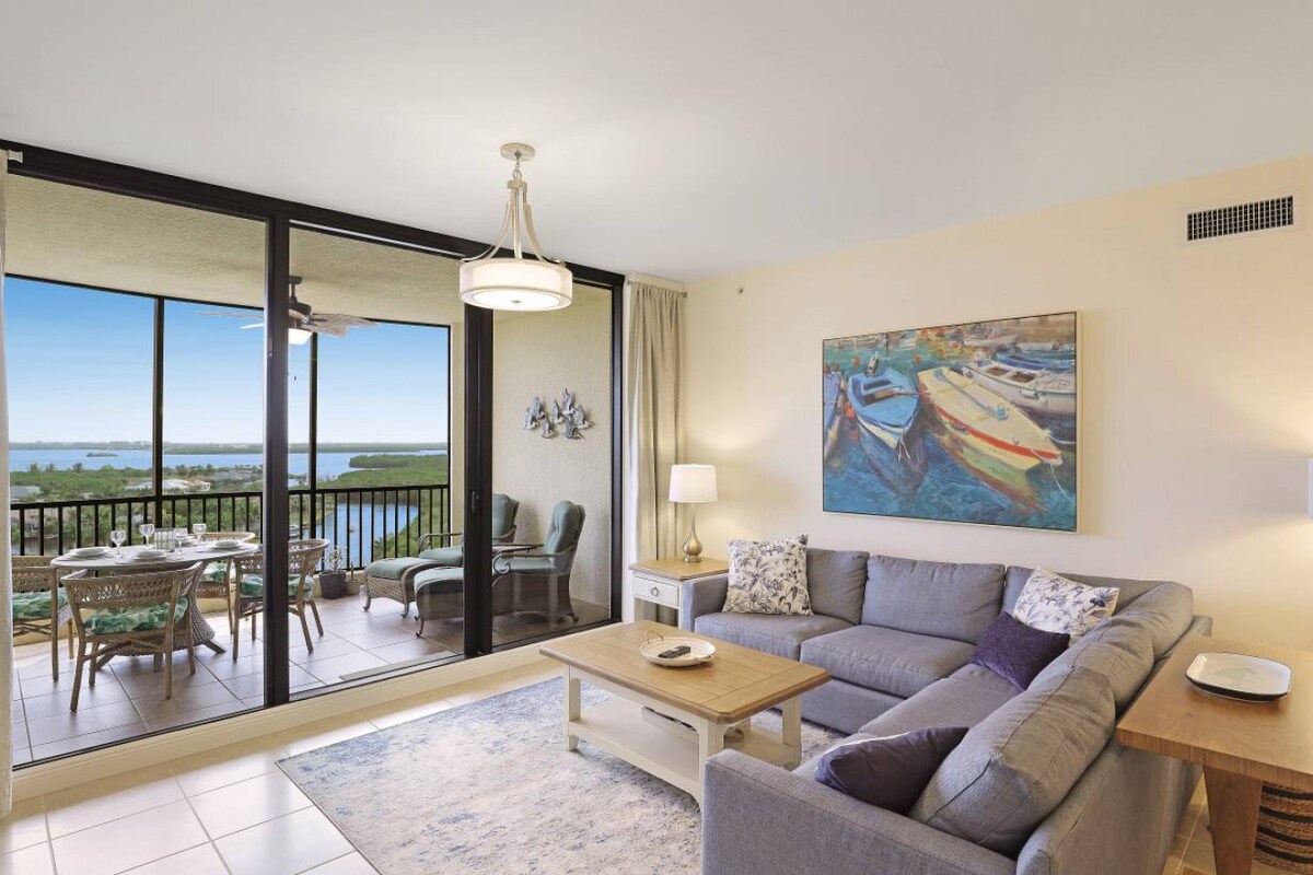 Step onto your screened lanai, accessible from both the living room and master suite, and take in panoramic views stretching southward towards the Gulf, Fort Myers Beach, the Caloosahatchee River, and Sanibel Island—the perfect backdrop for your morning coffee. A second private lanai off the guest bedrooms ensures every guest enjoys their own slice of paradise.