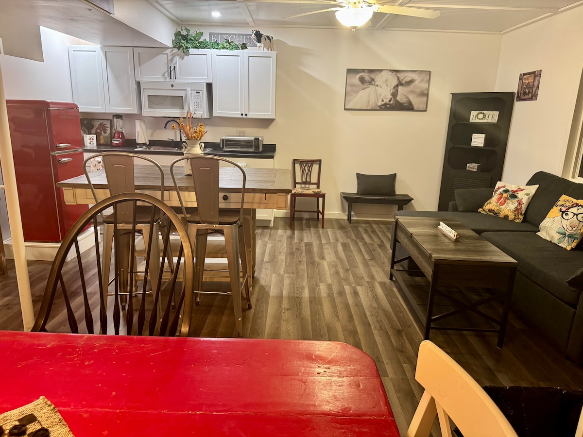 - Fully Stocked Kitchen – Cook a cozy meal or enjoy a quick breakfast before heading to the Fairgrounds.