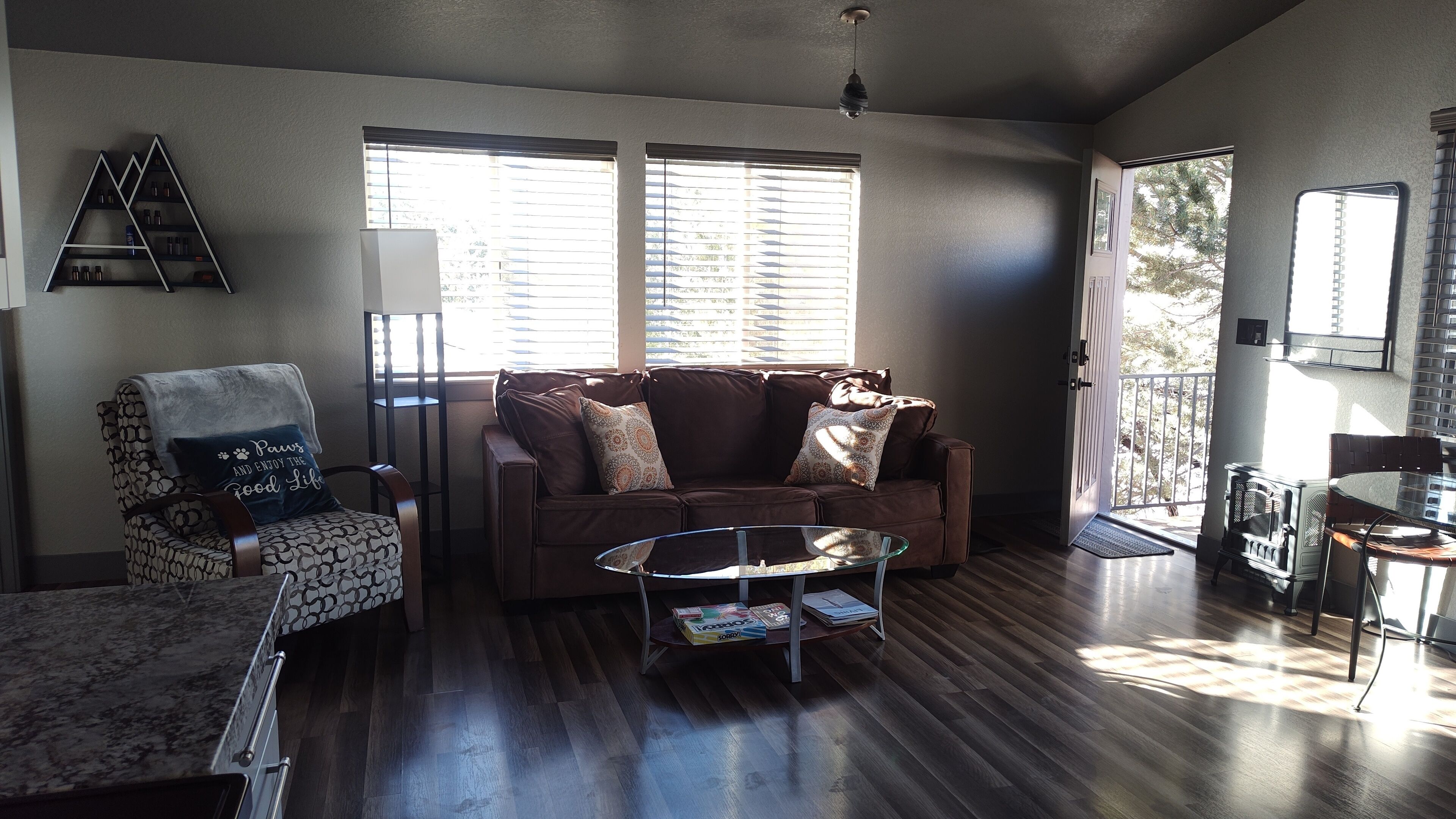 - "Great location within walking distance to downtown. Freshly remodeled with a focus of efficient use of space. Minimalistic decor made to feel open and welcoming. Patio living space allowed for relaxation with a fantastic view. Owners were very responsive. Highly recommend!" - "Cozy stay here, just amount of room ~ thought my bed at home was comfy but had the best night of rest here. Located so close to town for a great walk in the am for coffee. Perfect place to stay in every way!! Will be back, especially since my new Grandson has arrived 💙🥰❣️"