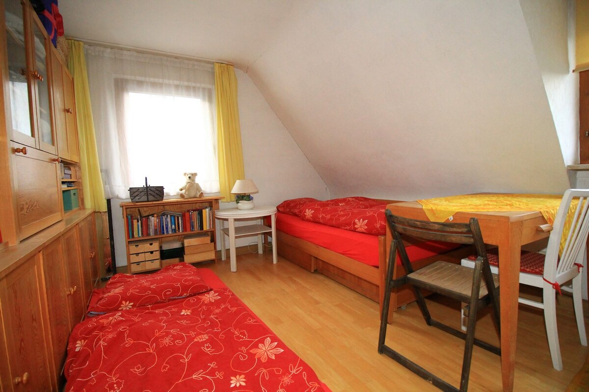 The sleeping options are on the upper floor with sloping roof and, if necessary, also directly under the roof (mattress storage on the floor) overlooking