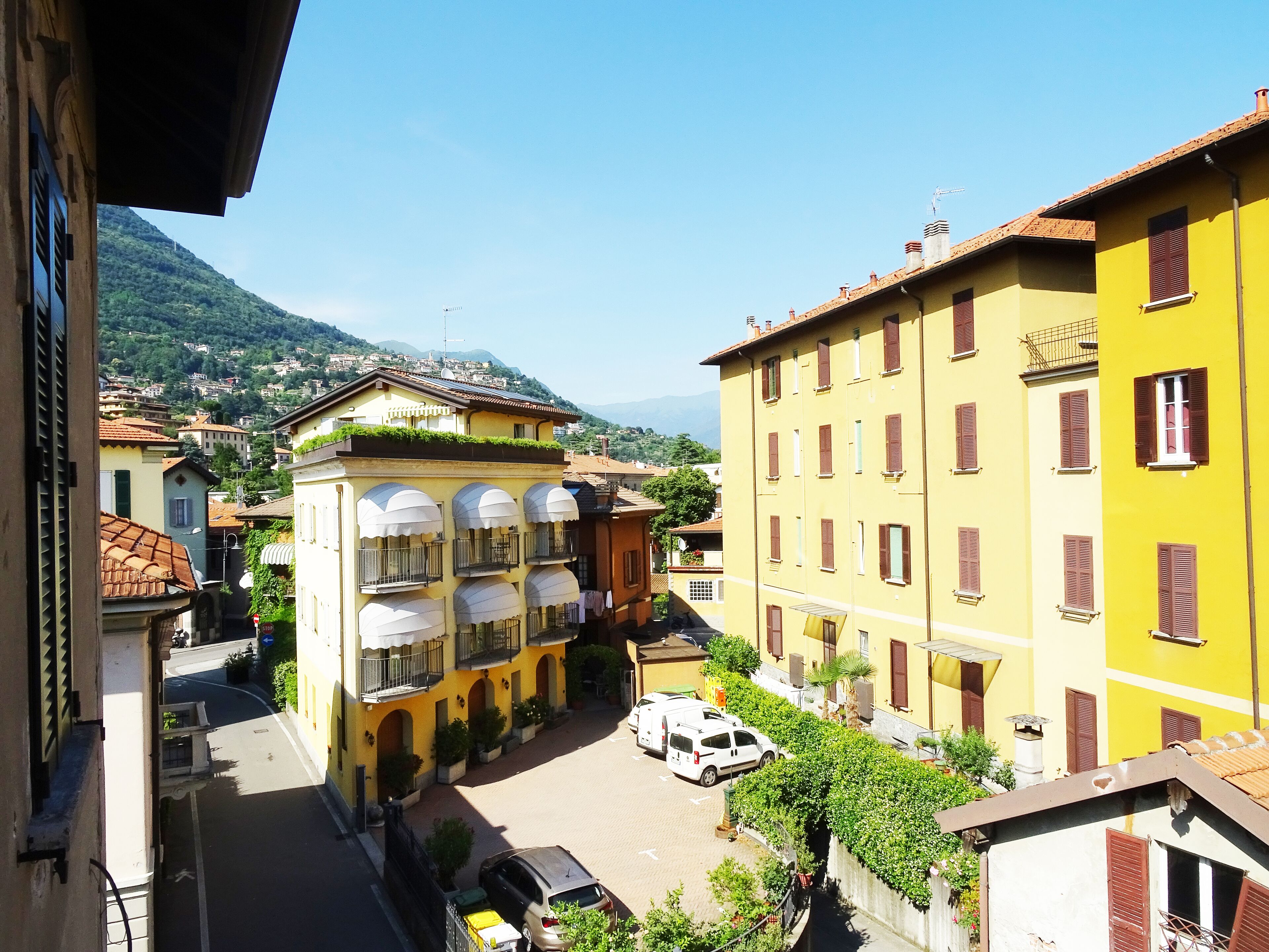 The apartment is bright and has a great view of the Lake Como mountains.
