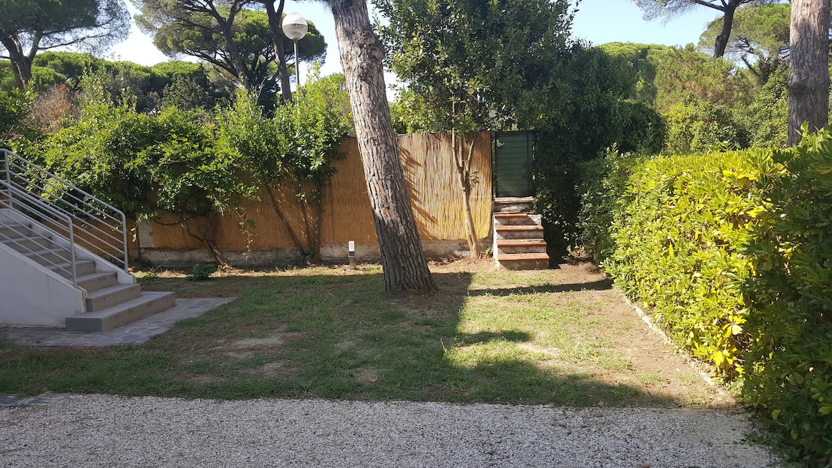 - A private back garden of about 34 square meters, usually shaded, with a teak patio with rectangular table, 6 outdoor chairs, large extensible wall curtain (ideal for eating outdoors in the shade throughout the summer), wooden house for beach equipment (there are 2 beach beds to be used in the garden), also suitable for hosting bicycles (for now not provided) and clothes dryers. This garden is fenced on over 3 and a half sides (there is an unfenced passage of about 1.2 meters between the corner of the wooden house located in the garden and the closest corner of the real estate unit), so it can also be adapted to accommodate small dogs (for example by closing the step not fenced with means of fortune).