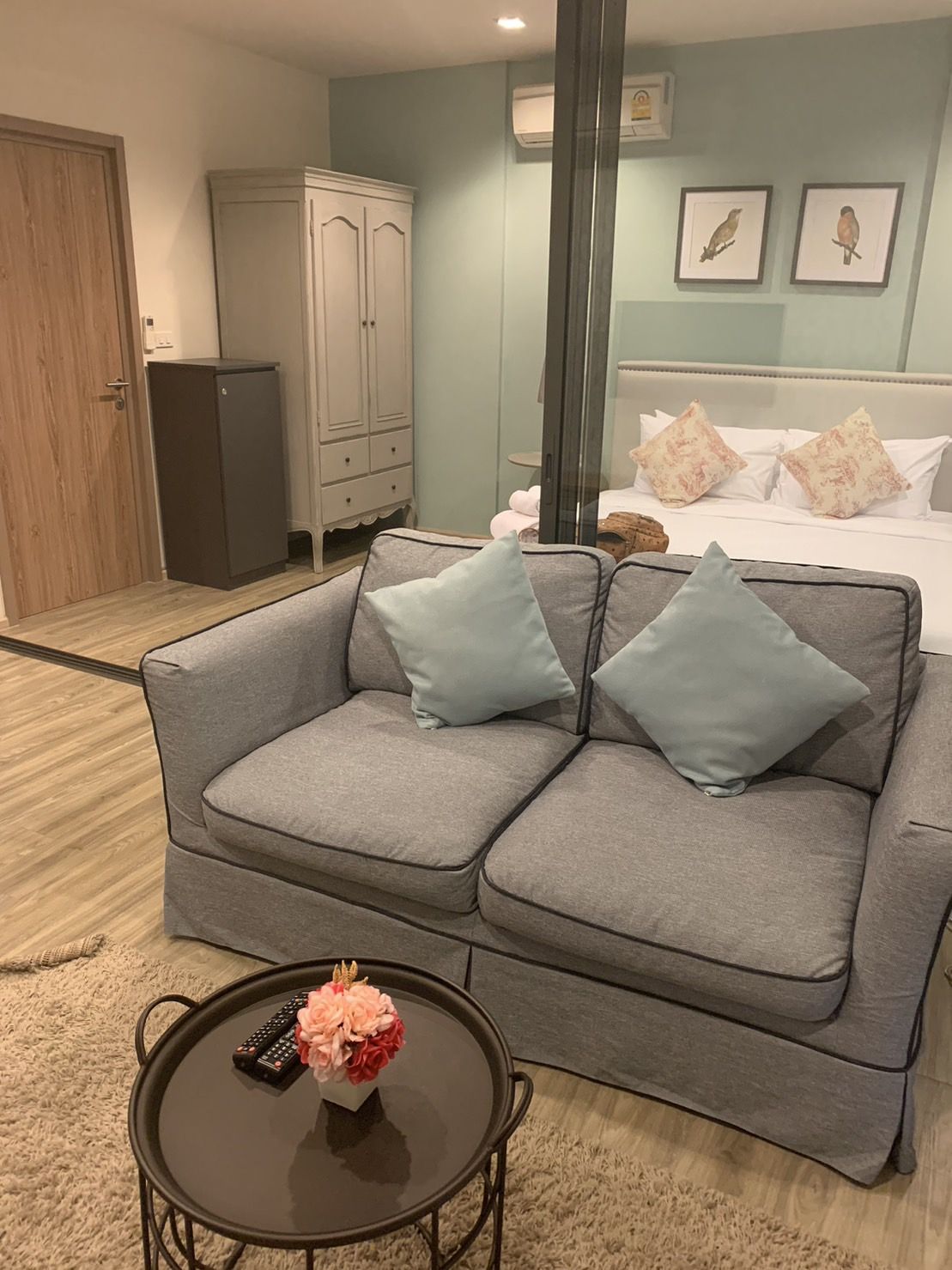 , living room & outdoor dinning area. My place is suit with family, couple because you will garden view from the room. FREE WIFI!! FREE Gym !! & FREE Swimming pool. Cha-am beach is in front of your place!!