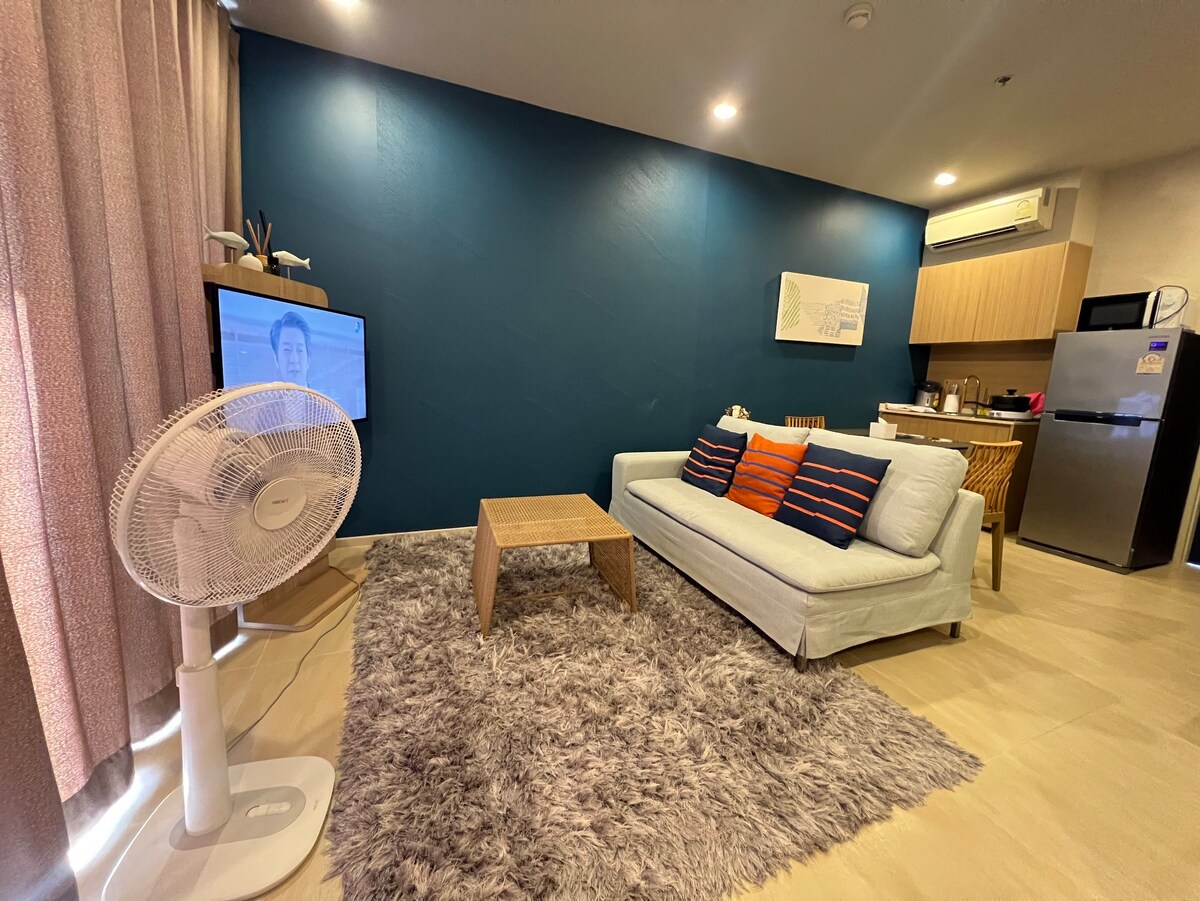 Welcome to our premium two-bedroom oasis, 200 meters from Cha am beach, Sea View. Our comfortable apartment. Free parking, Free wifi at the library, peaceful mountain and partial sea view, with massage shops, restaurants within walking distance. Tested matresses. Not too hard or soft. Swimming pool, fitness centre, laundry machines. Security and reception 24 hours.(Excluding bills; electricity and water are very cheap)