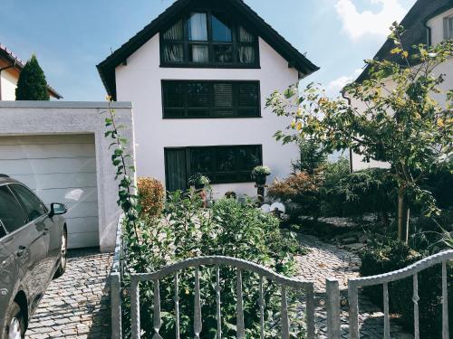 The centrally-located accommodation in the city of Cham offers all the important points of contact close by. A parking space directly on the property and a wide view of the mountains are secured for you. If you have some time to browse in the evening, get inspired by the large library and relax on the large XXL sofas. Want to talk musically? Be the composer and give a small concert on the piano in the music room.