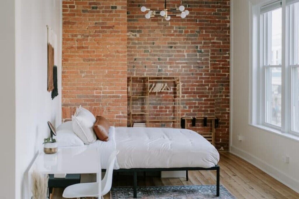 35% off monthly stays! This Loft is designed to the T with all the comforts and feels! From exposed brick walls, refinished original hardwood floors, a full kitchen with quartz tops, new heating/AC and with the comfiest furniture, we know you'll love your stay here! There is off street parking out back with rear access.