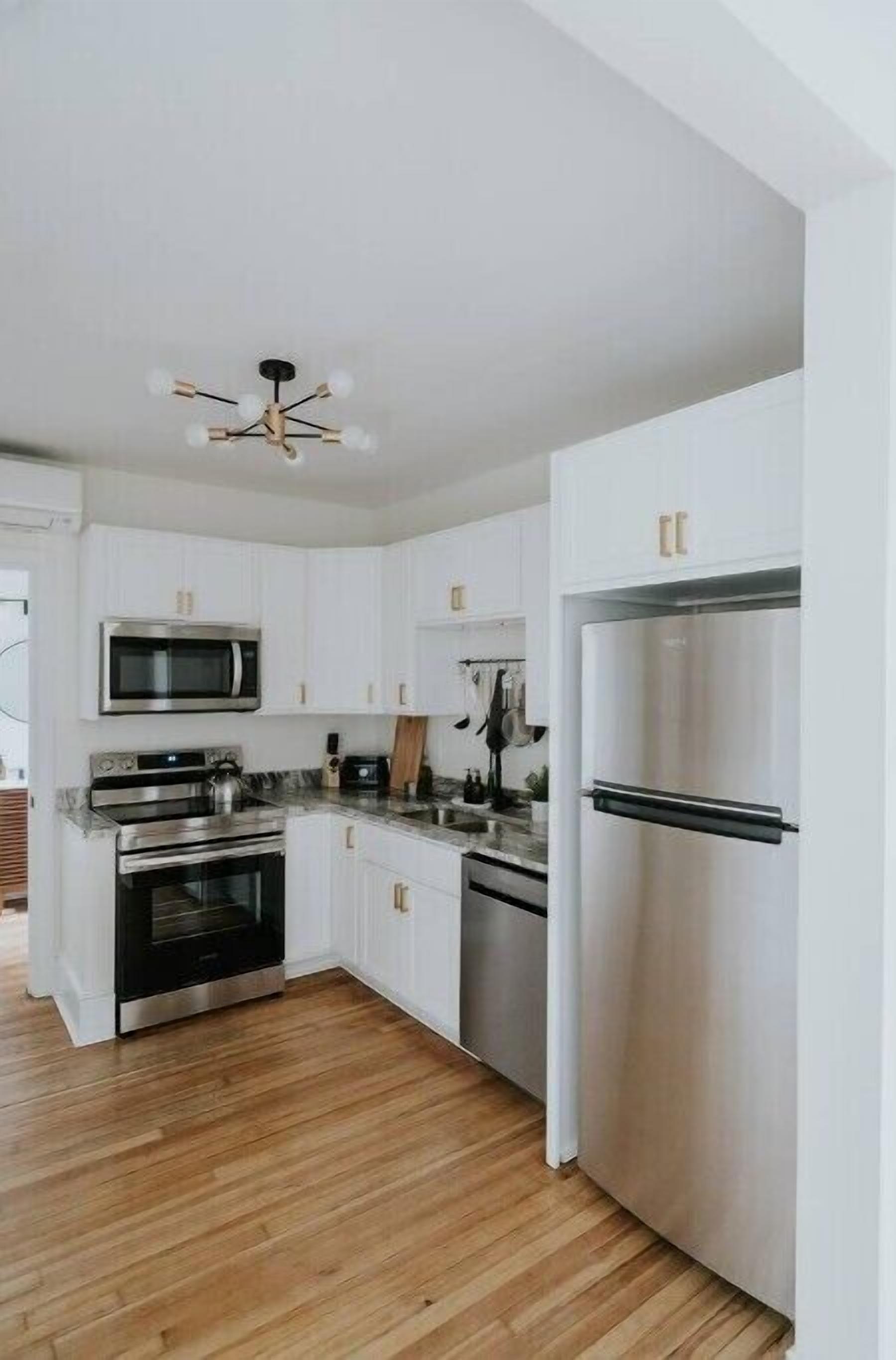 50% off monthly stays! This spacious two bed apt has been redesigned with all the new finishes alongside 120 year old exposed brick including new bath and kitchen with quartz countertops, stainless steel appliances and new hardwood floors throughout.
