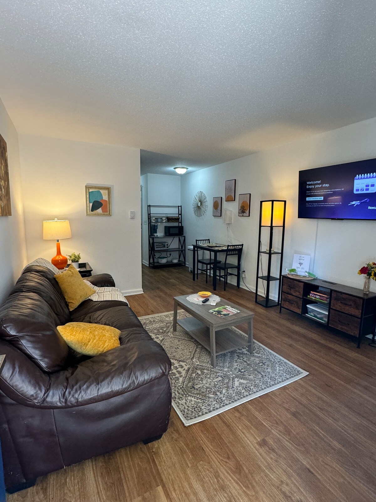 Close to everything! Minutes from the University, hospitals, dining and shopping. Bus line 2 blocks away. Living room, kitchen with dining table and chairs, nice lighting, bathroom and bedroom. 2 huge bedroom closets. Fiber optic Internet with Wi-Fi with 2 Roku TV's.