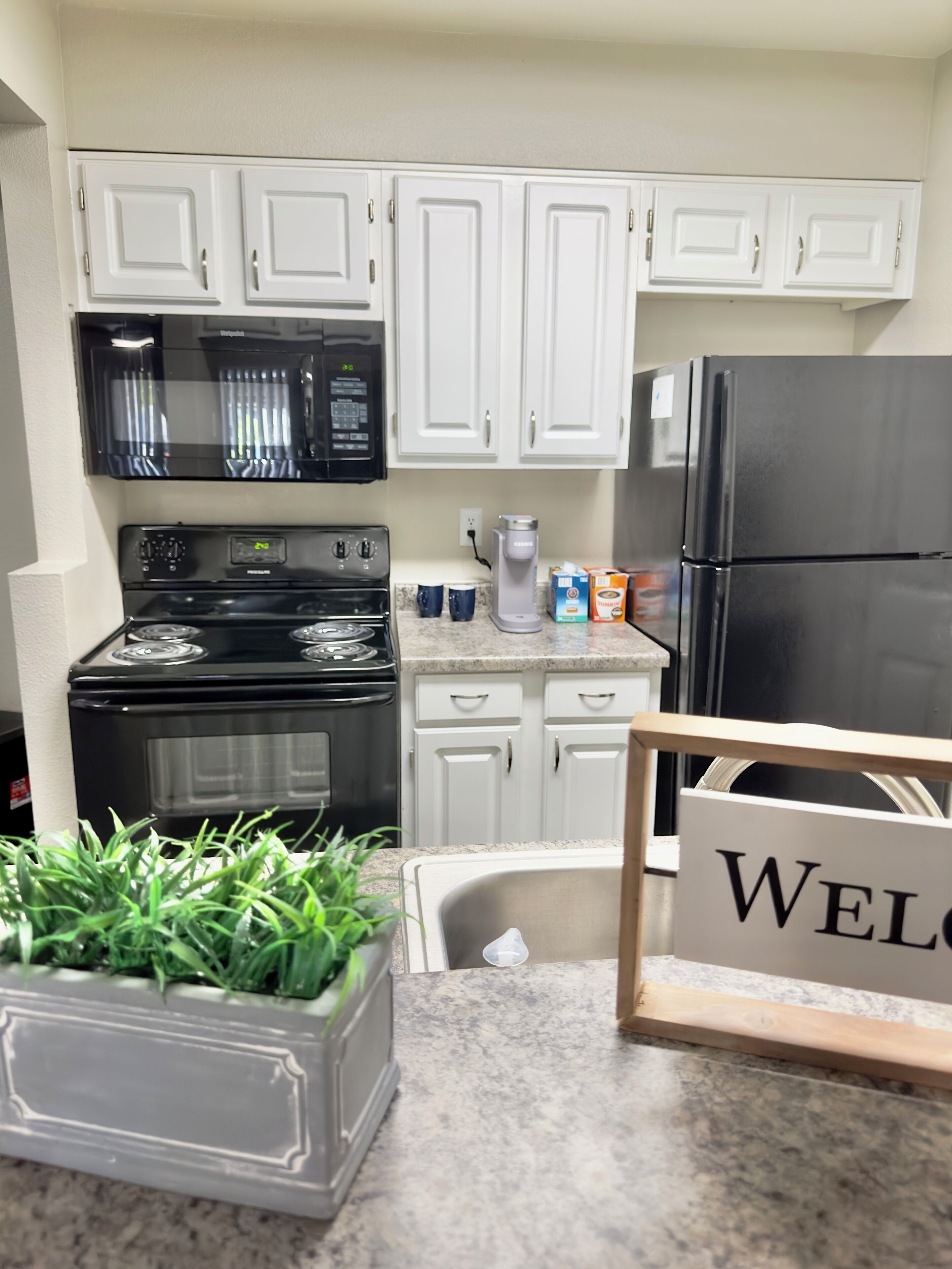 Enjoy a stylish experience at this centrally-located place. King size bed, all new full size stainless steel appliances, fast WIFI. Second bedroom with full-size bed. Short walk on property to pool and hot tub. Outside patio to enjoy the beautiful weather and your own bbq grill to use.