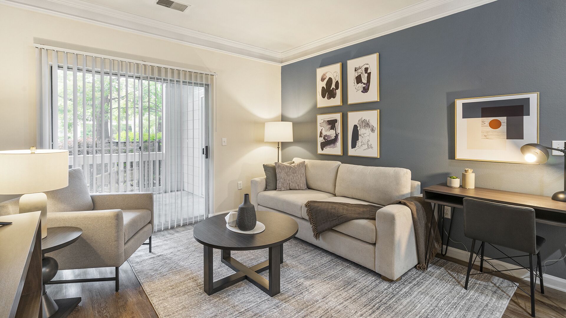 A fully furnished apartment at The Helix at Summit Pointe offers a luxurious and convenient living experience. These modern apartments are designed with sleek, contemporary furnishings, including comfortable seating, stylish decor, and all essential appliances. The open-concept layouts provide spacious living areas, and each unit is equipped with high-end finishes like granite countertops, stainless steel appliances, and wood-grain plank flooring. Residents enjoy the convenience of moving in without the hassle of furnishing, making it an ideal choice for those seeking comfort and style in the heart of Summit Pointe.