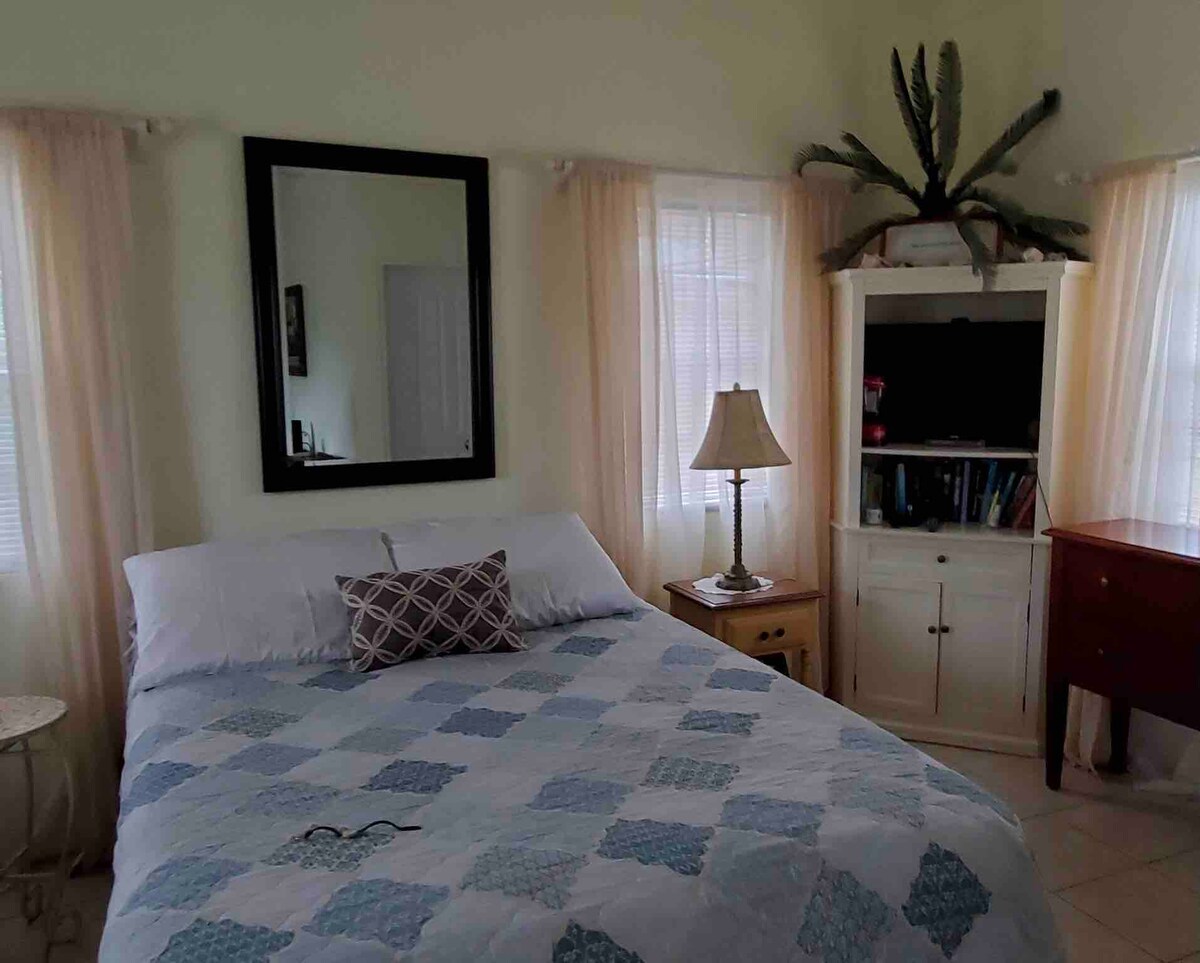 Come stay in our 1-bedroom apartment in a great neighborhood. Ideal location for 5 minute drive to Downtown Christiansted Harbor where you can schedule boat tours to Buck Island, visit gift shops, restaurants and historic sites. Also, Frederiksted is a short drive to visit Rainbow Beach. The apartment is located at the end of the main house with your own private entrance. Fruit trees are all around the premises. Great for Business and Personal Getaways!