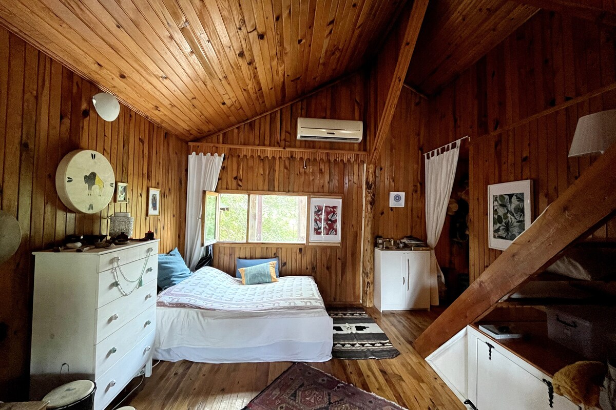 The apartment is in a small one-story house. It is accessed via an external staircase. It is the perfect starting point for exploring the bay. The apartment on the top floor, surrounded by trees, can feel like a tree house. There is no further floor above it. Wooden floorboards and large tree trunks in the living area create a natural atmosphere. The unusual architecture makes living here a unique experience.The building has two further areas below. For the summer I have a 2-burner gas hob on the balcony. There is a shady seating area. It is possible to book an additional buffet. This is settled directly with the family on site. You get excellent food here. As much as you want to eat and at a gigantic price that probably want find elsewhere in Çirali. There are regular barbecues. It really is a wonderful place. The garden has some very comfortable lounge areas that offer plenty of shade. Mulberries, oranges and lemons can be picked. In October- December there are also pomegranates. It is truly a little paradise for the children. Chickens, ducks, pigeons and cats are always a great joy. Adults also get their money's worth in this ambience: the beach is only two minute's walk away. A small café is just a few steps away from the guesthouse. The carparc of the eternal flames can be reached in 5 minutes by car. You can get tea in the restaurant area all day long. There is a library where you can borrow books. You can join in with spontaneous music with other guests or just be there. Drinks such as wine, beer and soft drinks can also be bought from the family. A fireplace can be used. The apartment is a great place to relax. Aesthetically tasteful and, above all, very cozy, you can let your mind wander. Welcome to my oasis. Please contact me if you have any questions.