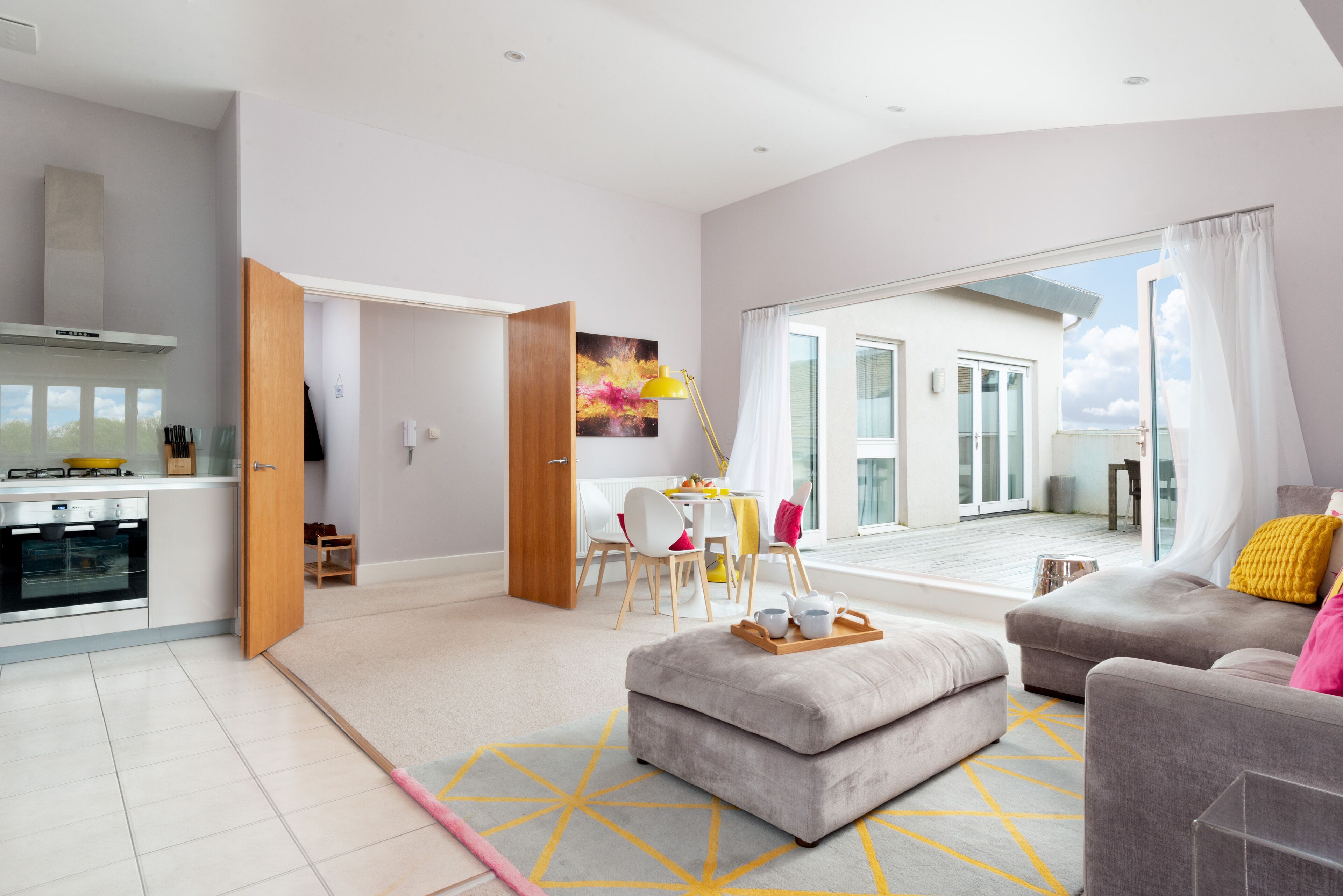 - Bright duel aspect living room with an extendable dining table for up to 4 people and double sofa bed (additional fee of £15 applies for 2 person bookings wishing to use the sofa bed)