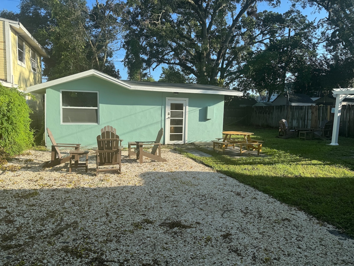 Studio apt called "The Cottage" secluded getaway private setting with a yard. Queen size bed, kitchenette, closet, full bath (hot shower) minutes to Downtown Clearwater and Clearwater Beaches.