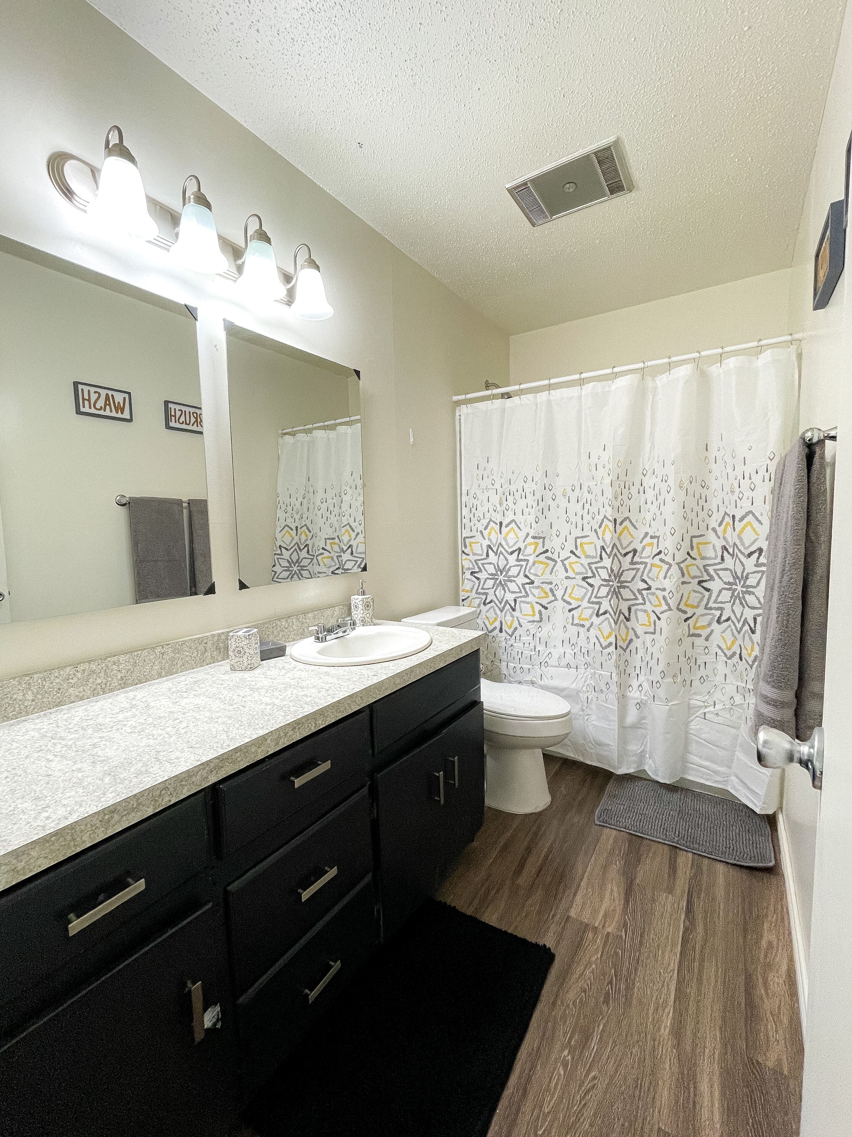 Fully Equipped Bathroom: Relax in the shower and bathtub combo, designed to meet all your needs.