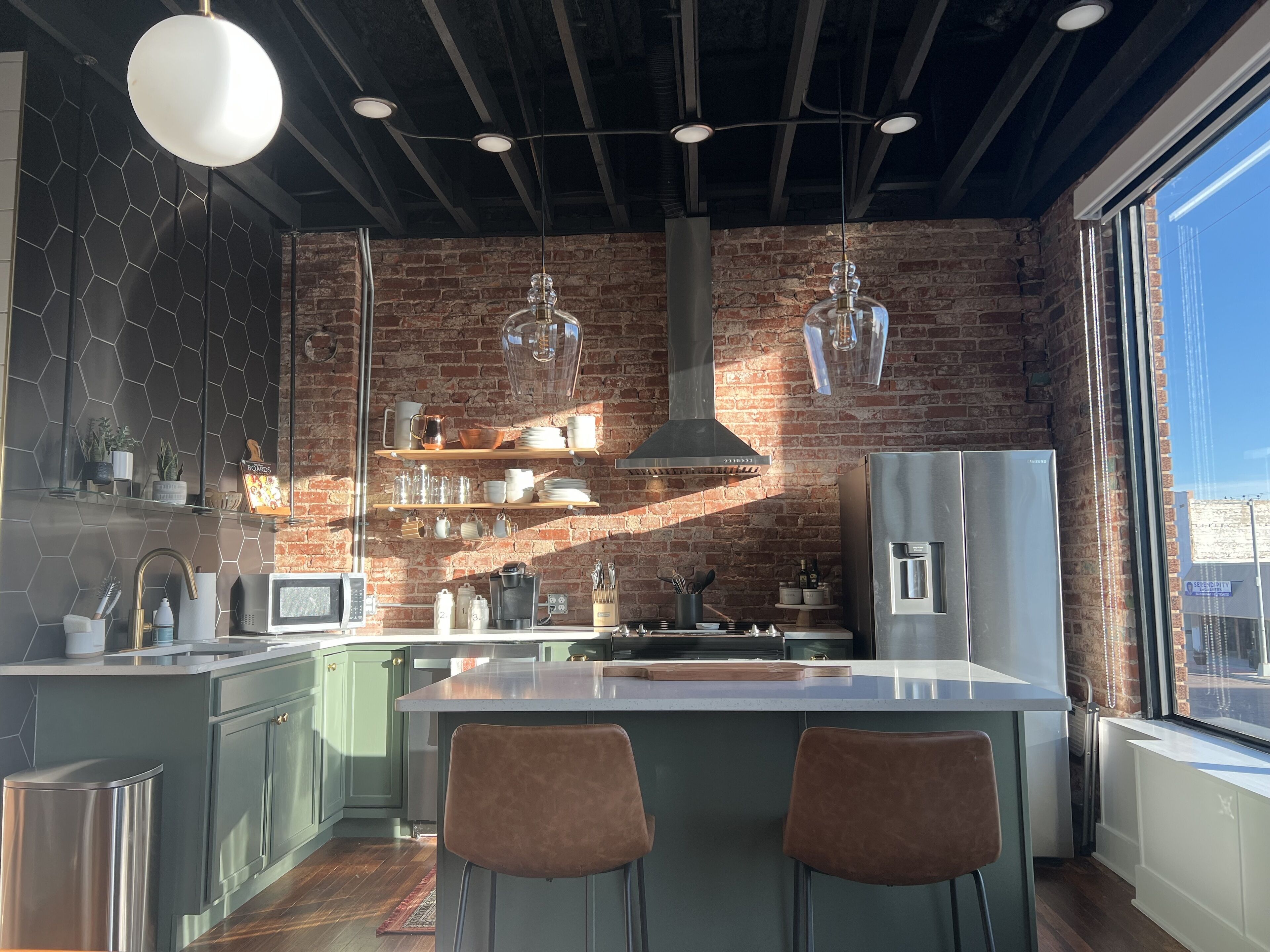 Originally McBee's Cafe built in 1932, the building’s second story has recently been renovated into a pristine and spacious 2 bedroom 1 bathroom loft perfect for vacation, visiting family, or business.