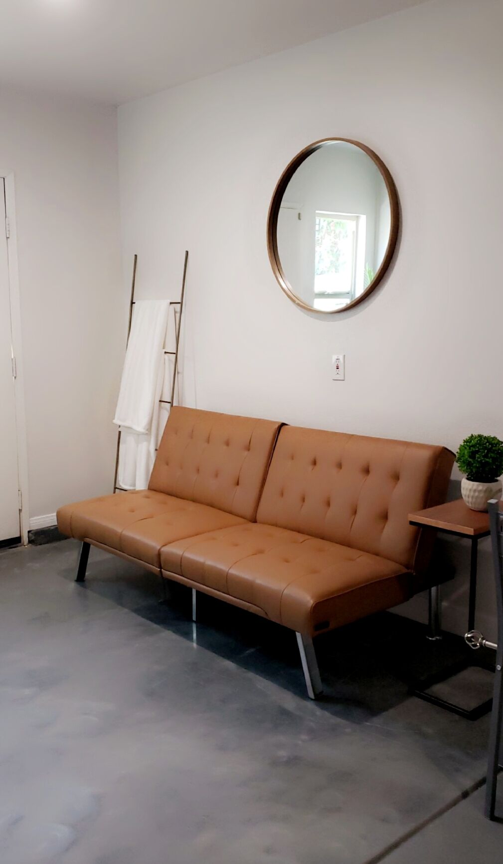 This home sleeps 2 guests in a sleeper sofa fitted with crisp linens and soft blankets.