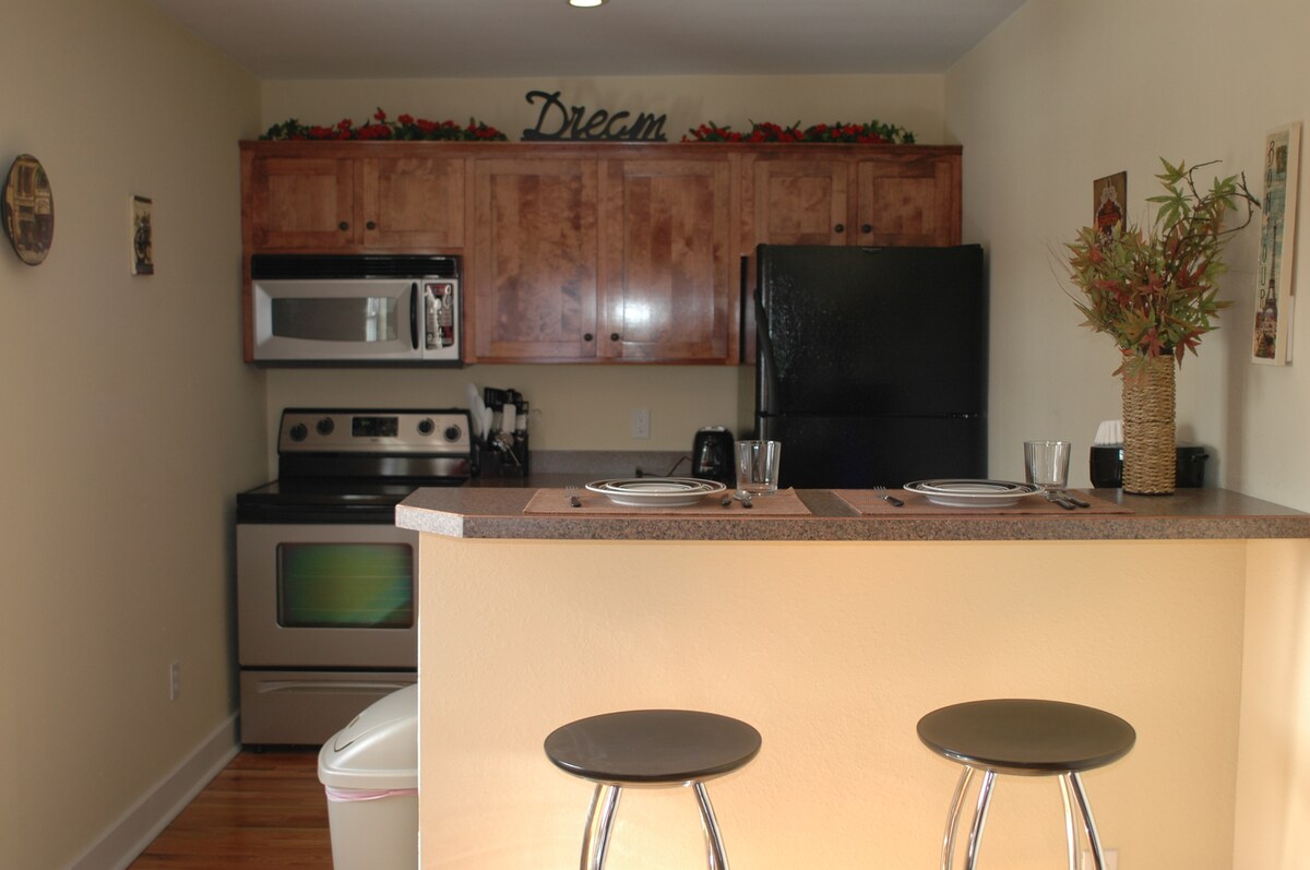 Updated and modern one bedroom apartment located in the Old Town Shopping district of California, Missouri. Enjoy Hotel luxury with the conveniences of home. A kitchen stocked with tools and amenities to cook while steps from local cuisine.