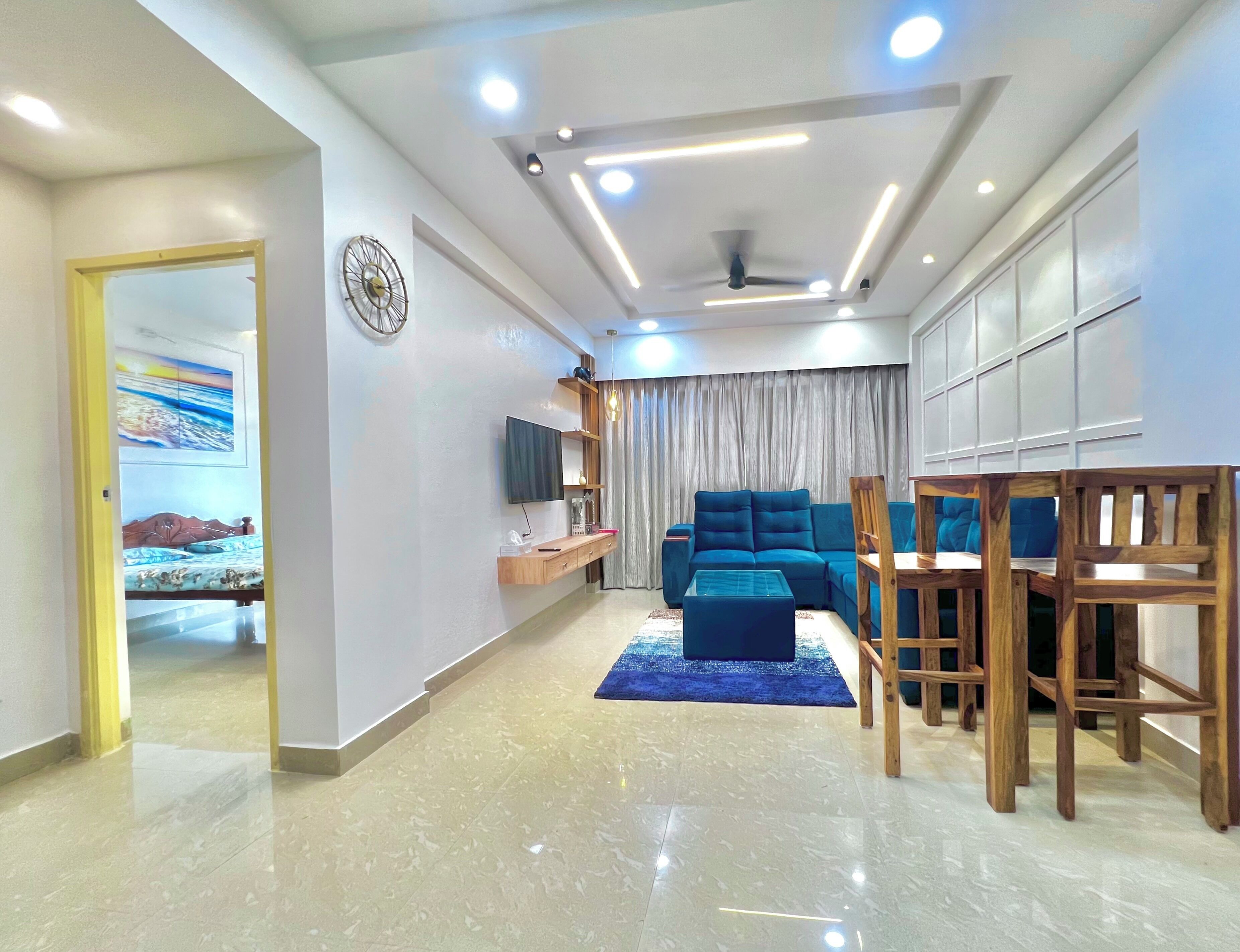 Our holiday home is well curated with soulful interiors. The apartment offers a serene, homely and cohesive space.