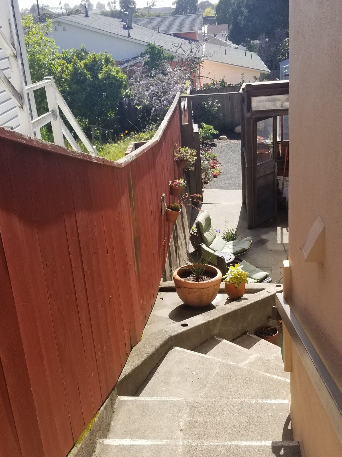 The unit is entirely separate from the upstairs and has a patio. There is also a large backyard garden guests may use anytime.