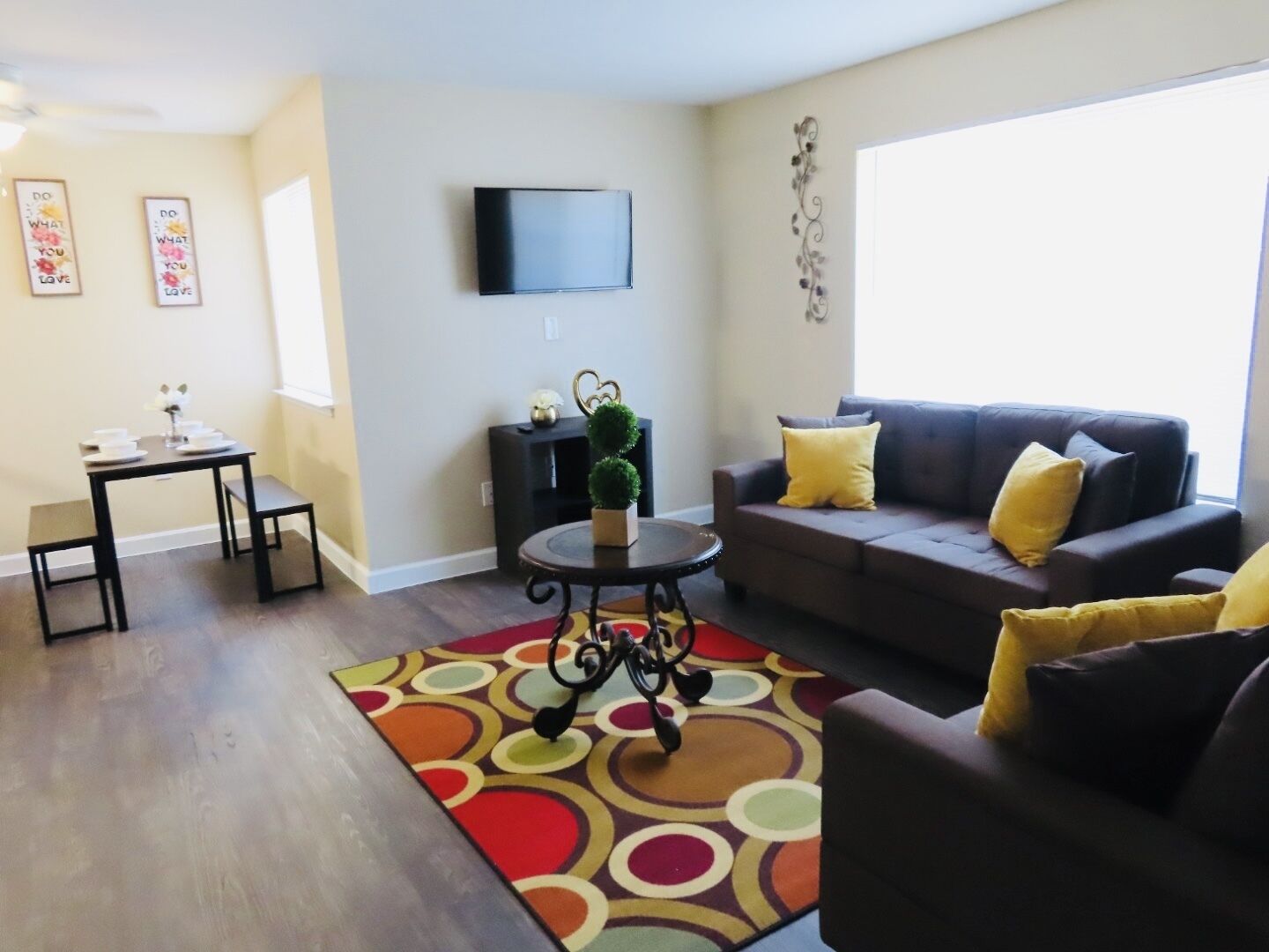 🛋 Living Area: Relax in the inviting living room with a cozy sofa and a Smart TV for streaming your favorite shows.