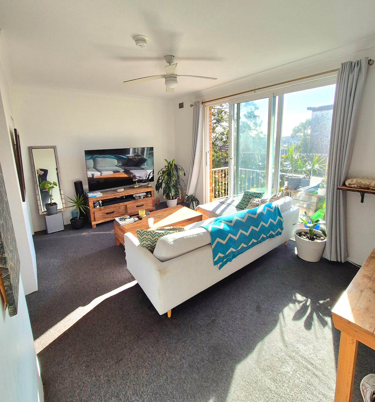 Our peaceful garden apartment in Coogee is quiet and sunny with a large shared garden. It is situated on a park while also being very central.