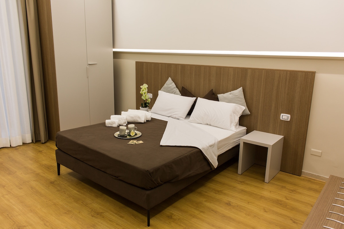 Apartment for exclusive use with a bedroom with a double bed and a living room with a sofa bed. The apartment has a kitchenette equipped with dishwasher, dishes and pots. The private bathroom with shower is equipped with washing machine, towels, hairdryer, and detergents. Linens for the beds are also provided. The apartment is located in the immediate vicinity of the Annunziata Civil Hospital and the city center.