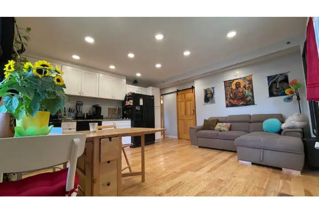 Guests have access to the entire second floor apartment including 3 bedrooms, 1 bathroom, kitchen, and living room.