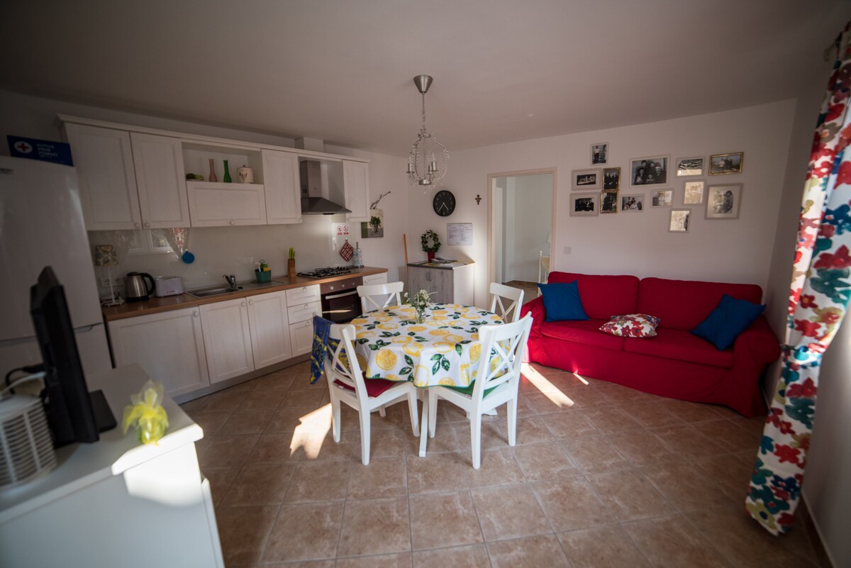 Family house with 3 well-equipped apartments/rooms let to visitors.48m2 apartment on the ground floor,sleeps 4 adults.Doors open to a pleasant terrace for al fresco meals , leading to vegetables and flower garden.Privacy without seclusion.Suitable for extended families and friends.Ground floor wheelchair accessible.Small pets welcome,dog beach nearby.