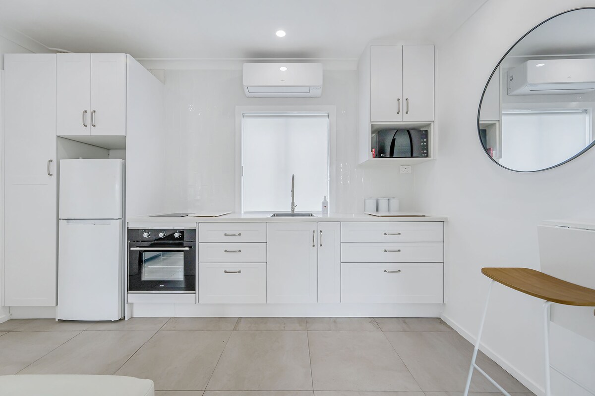 The fully equipped kitchen in Beachfront 2 includes a full-size fridge, allowing you to prepare meals with ease. Additionally, you can travel light as the unit provides its own internal laundry with a washing machine, adding convenience to your stay.
