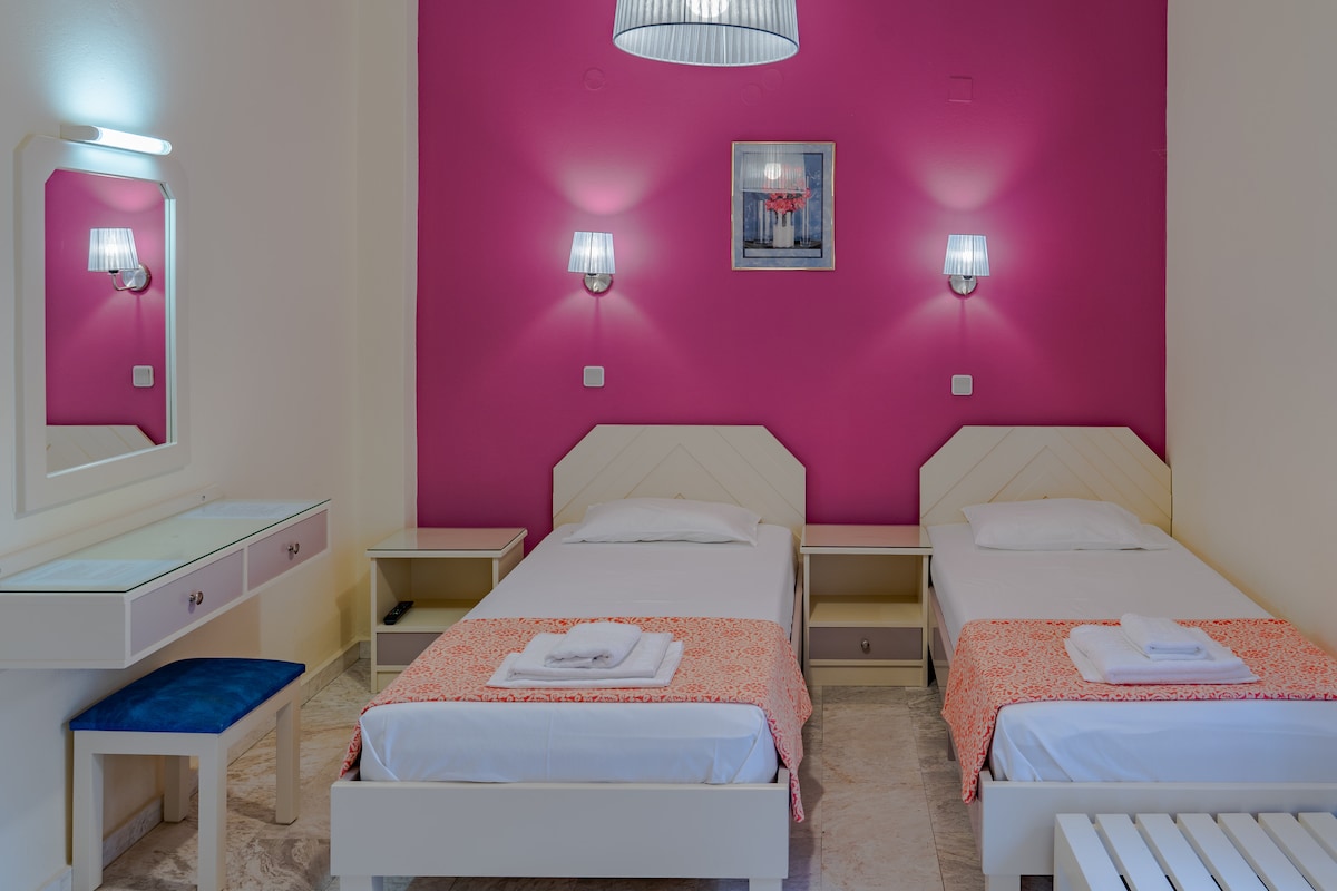 Orestis Hotel offers facilities including a reception desk services, swimming pool, free public parking, TV room, Wi-Fi, spacious outdoor area of terraces, patios, lounging areas, blooming gardens, sun beds & umbrellas all available free of charge.