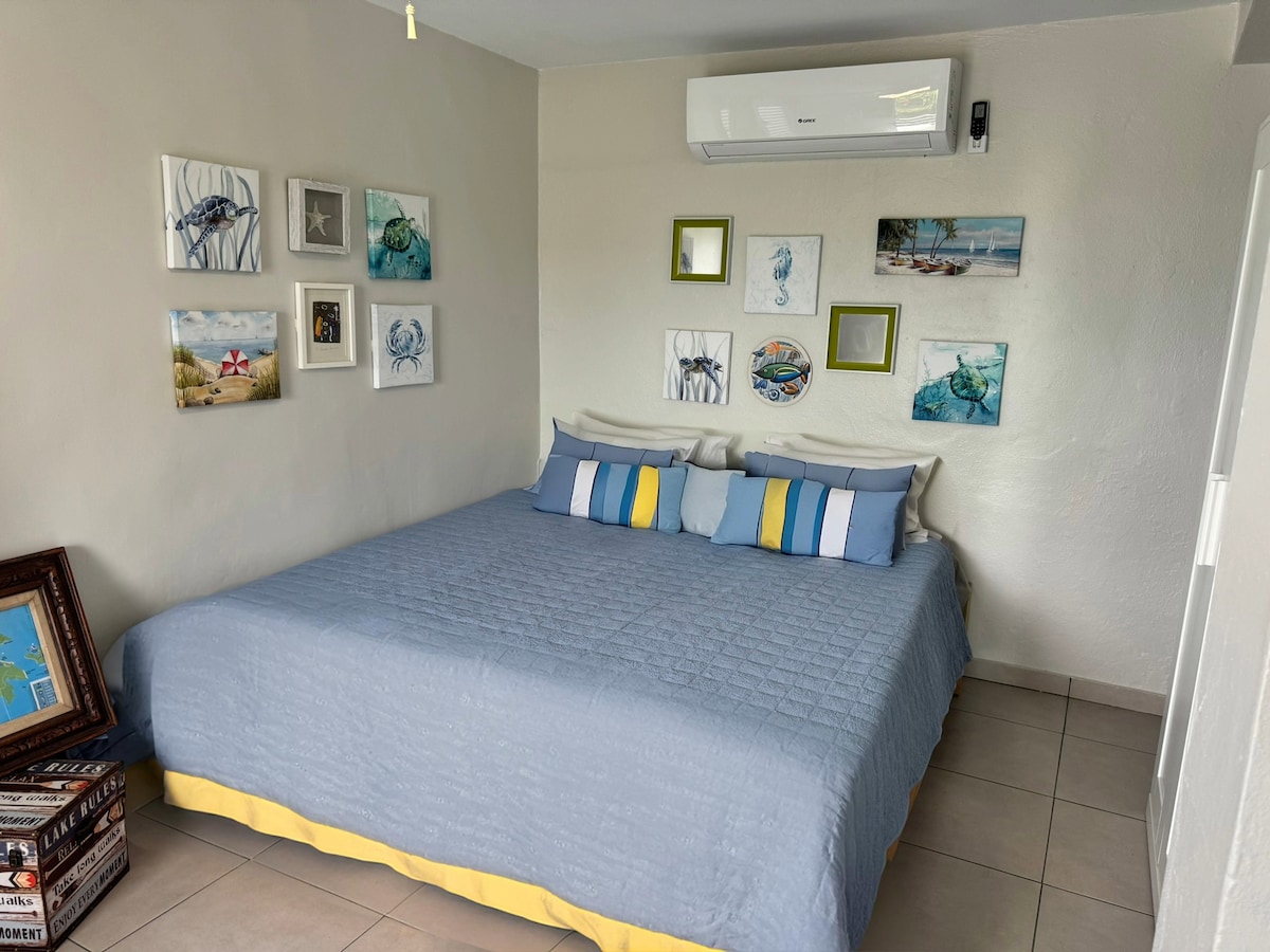 This first floor apartment consists of a comfortable king size bedroom and a common area that features: a futon sofa, dining area and stocked kitchenette, both areas features A/C. We will provide beach chairs, cooler and towels.... just what you need explore Culebra's turquoise waters.