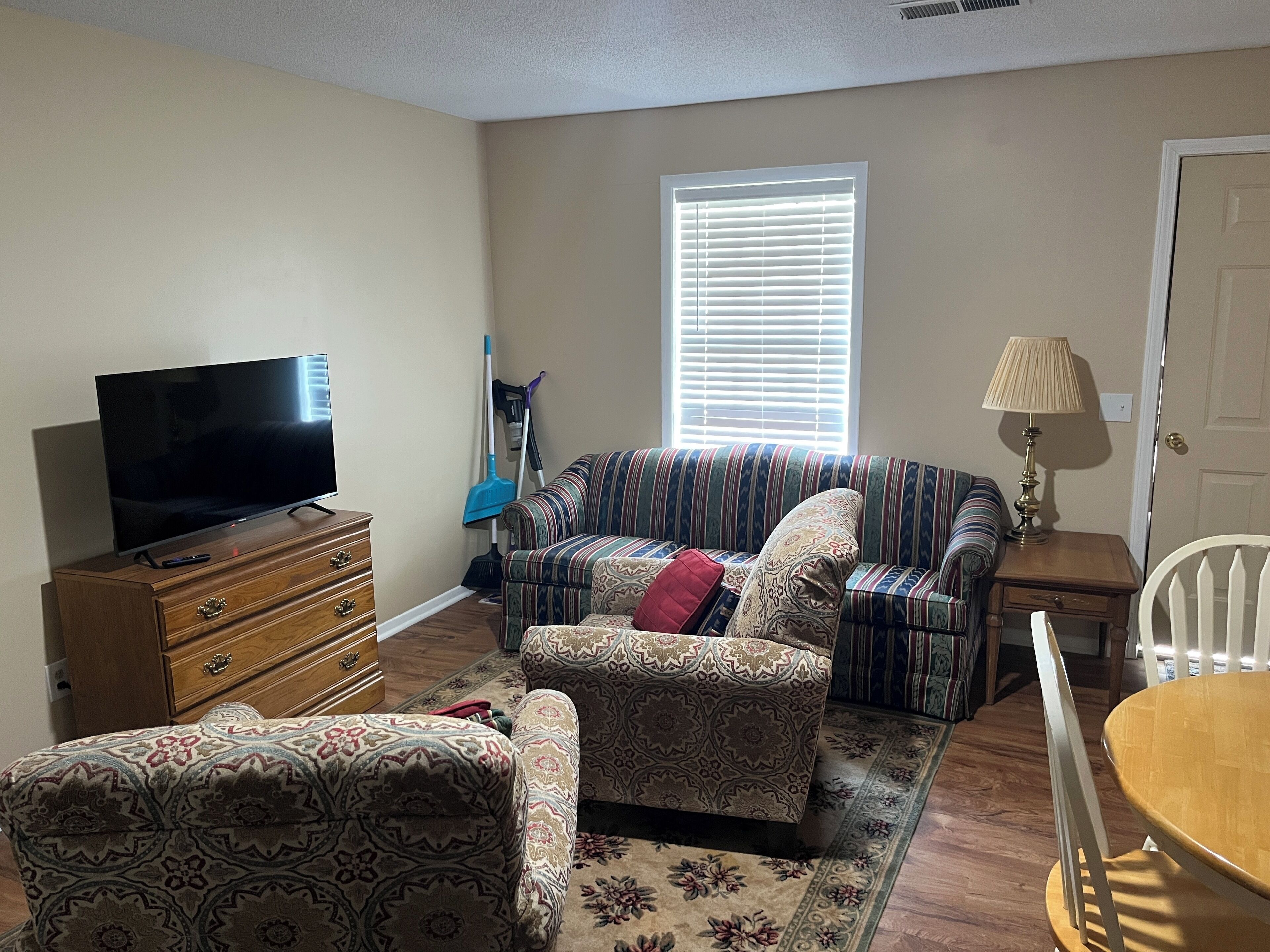 You will feel right at home in this comfortable 1 Bedroom 1 Bathroom suite with front door parking. You'll love the peaceful area convenient to dining, shopping and interstate access. You will enjoy your time here in Cullman with all the conveniences of home. Queen size bed in the bedroom and new twin extra long roll away for additional sleeping space. We look forward to hosting you.