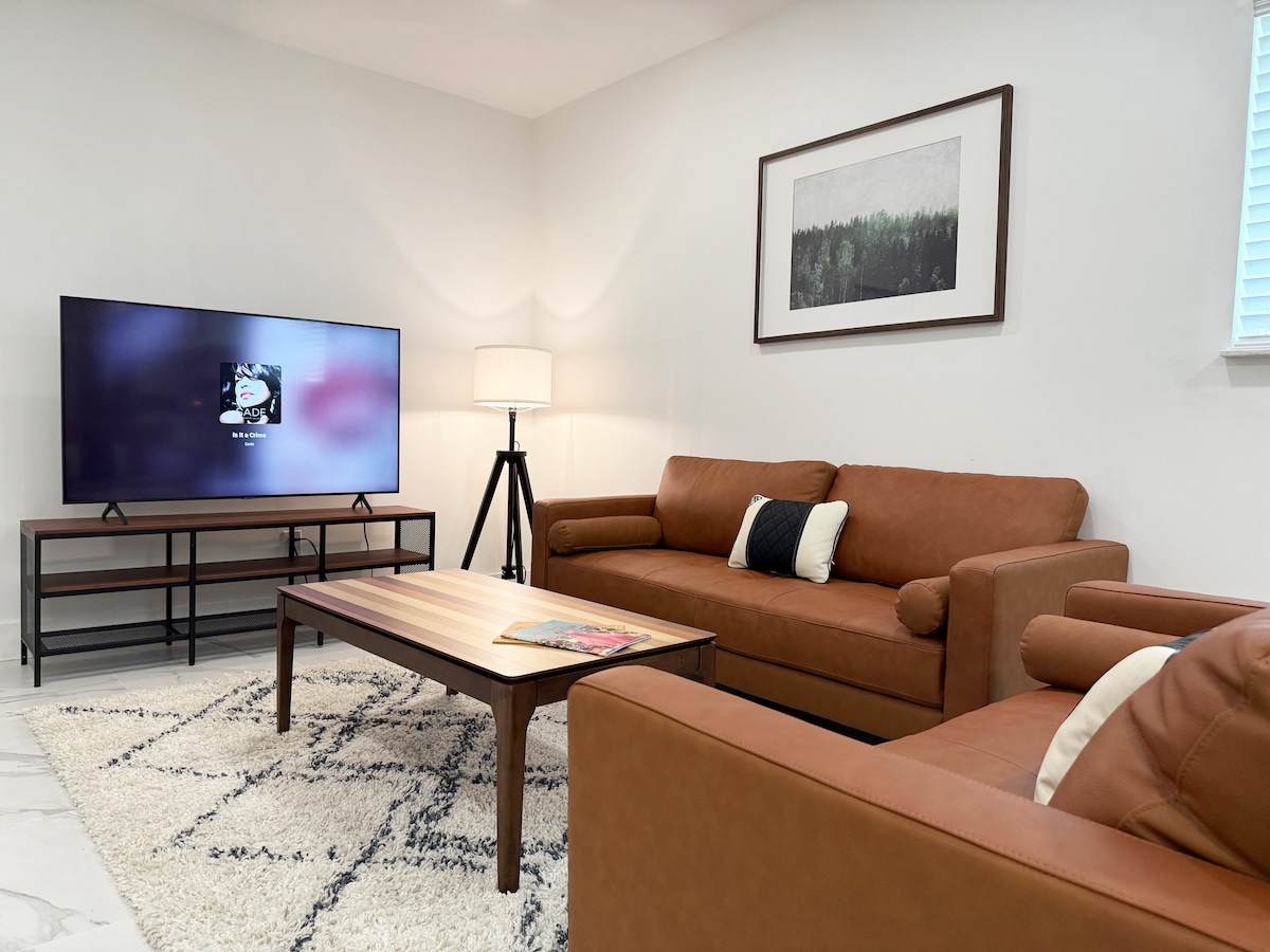 Wind down in the cozy living room with plenty of space to gather, or settle into the bedrooms for a comfy night with smart TVs and soft bedding that guests always rave about.