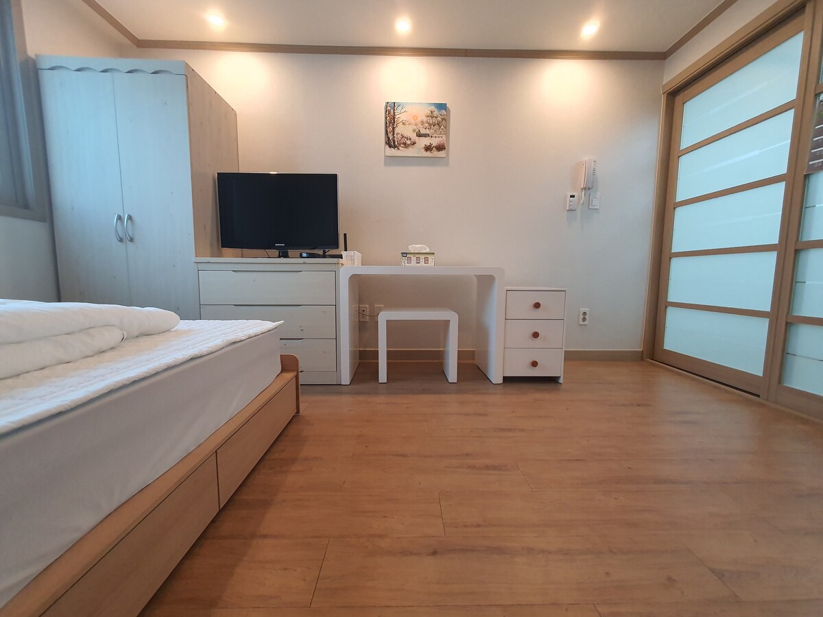 The property is a 3-minute walk from the main gate of Chungnam National University.There is a direct bus to Kaist or Dunsan-dong, and it is good for those who are practicing or interning at Sun Hospital. It is convenient because it is close to restaurants where you can eat inexpensively nearby and Bongmyeong-dong gourmet streets. There is a convenience store on the 1st floor, so you can use it late at night, and it is safe because the surroundings are not dark.There are many places to park on nearby roads without worrying about parking restrictions.