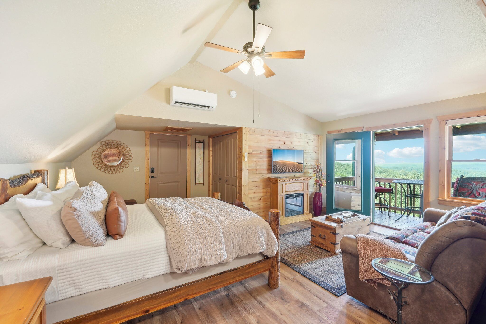 BEARADISE is one of three rentals, a private sanctuary featuring a KING Bed, oversized living room, reading area and a cozy outdoor deck with forest views complete with comfortable furniture, dining area. The pond, hot tub and fire pit are steps away and available for all of our guests.
