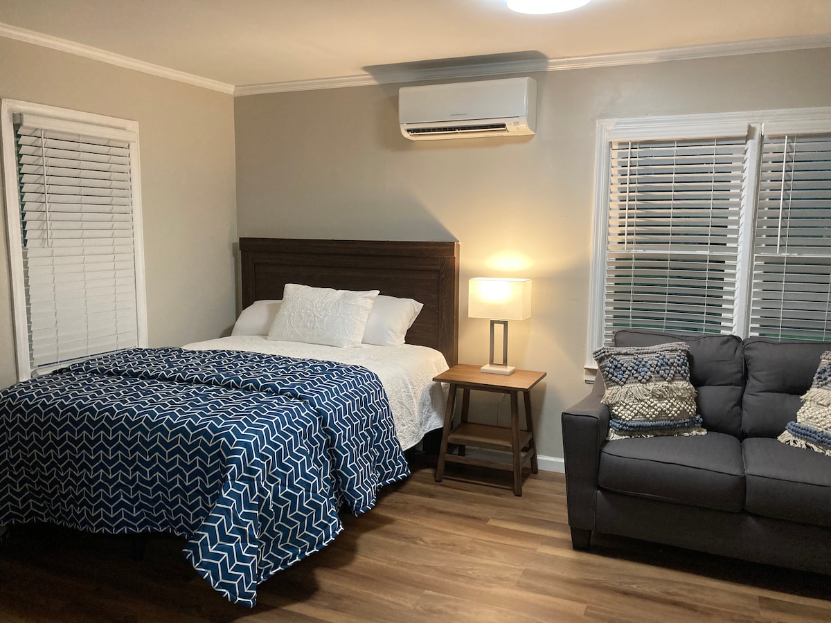 Forget your worries in this spacious and serene space. Studio style pad w/ king size bed fit for you!equipped with kitchenette w/microwave oven and a small refrigerator, with dinning area. the unit includes a comfortable couch where guest can enjoy watching your show on a 55" TV. A perfect space for the regular or business professional to relax after a busy day of travel or work, its peferct for the traveler who just wants quiet time.