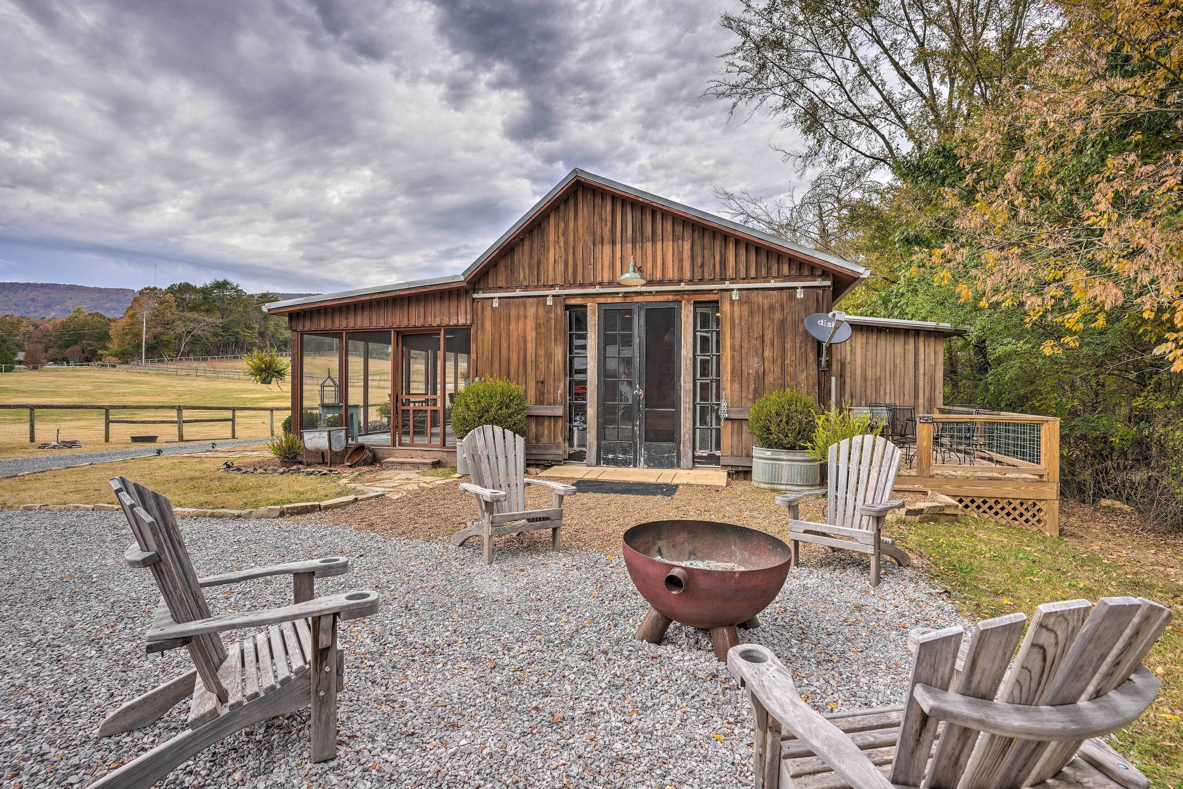 Escape from the hustle of your daily grind. Relax under the porch and take in the mountain views or relax by the pond. Our Stable House host a large king bedroom with full kitchen, living and dining combo.