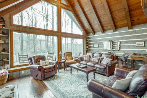 Nestled at the foot of the Appalachian Mountains, this serene Chatsworth cabin bestows couples with stunning outdoor spaces and a cozy interior — the perfect nature lover’s getaway!