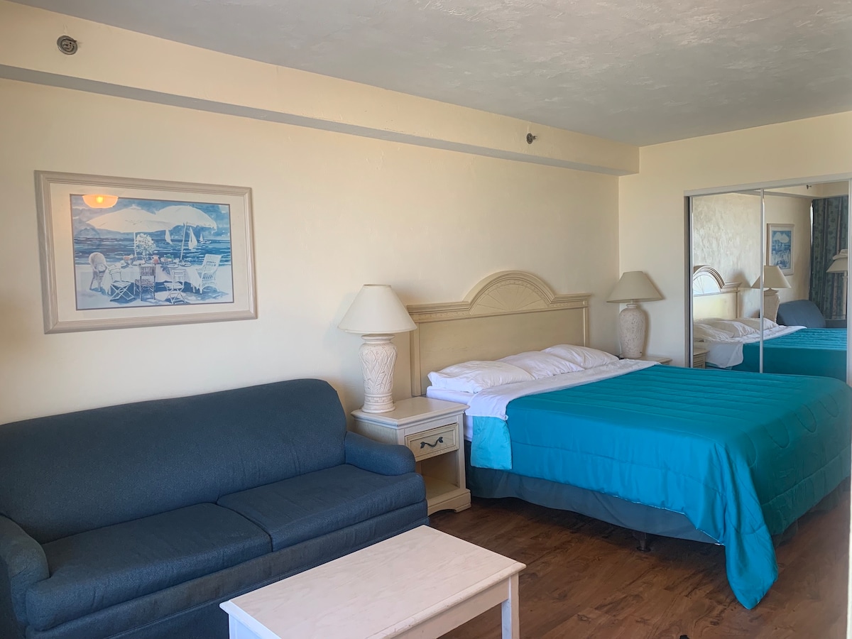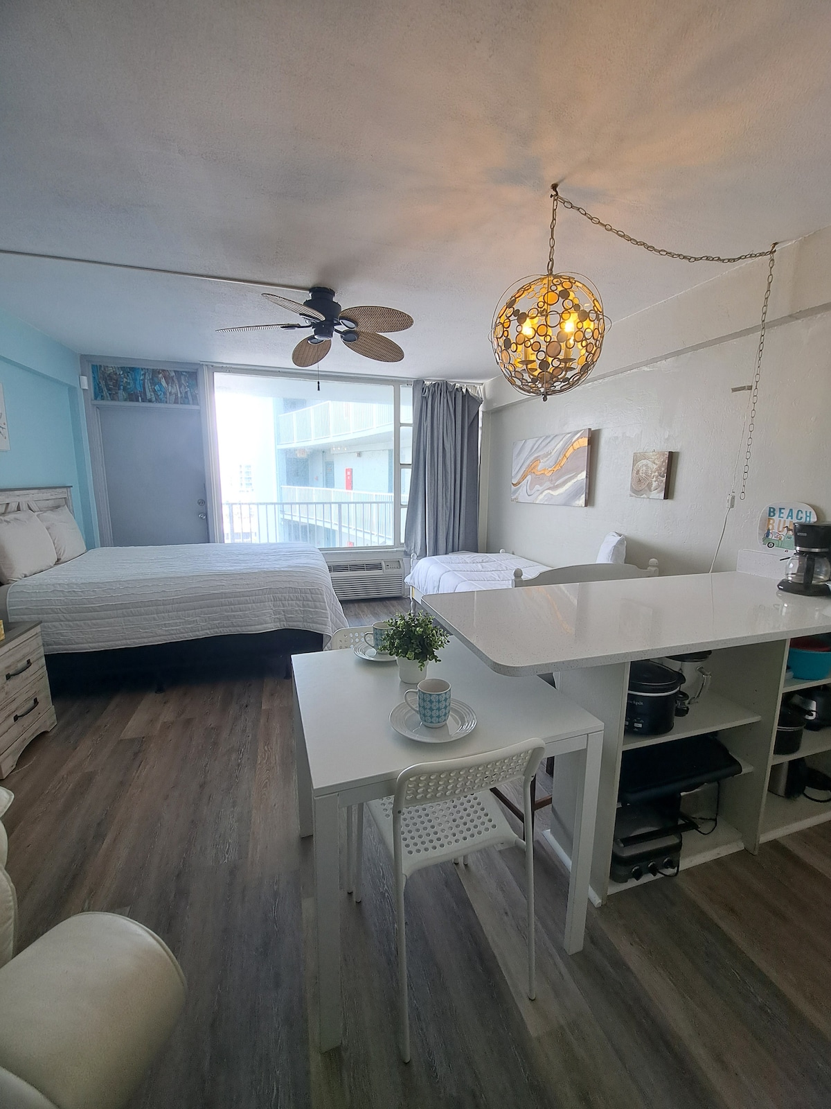 Welcome to this beautiful studio at steps to the beach, you’ll be well-rested and ready to explore Daytona Beach and all the nearby attractions, food, music, drinks for lots of fun. Enjoy the sunrise right outside the door and listening to the sound of the ocean just steps away! The night life is filled with great vibes around the beach with bars, clubs and restaurants for you to enjoy.