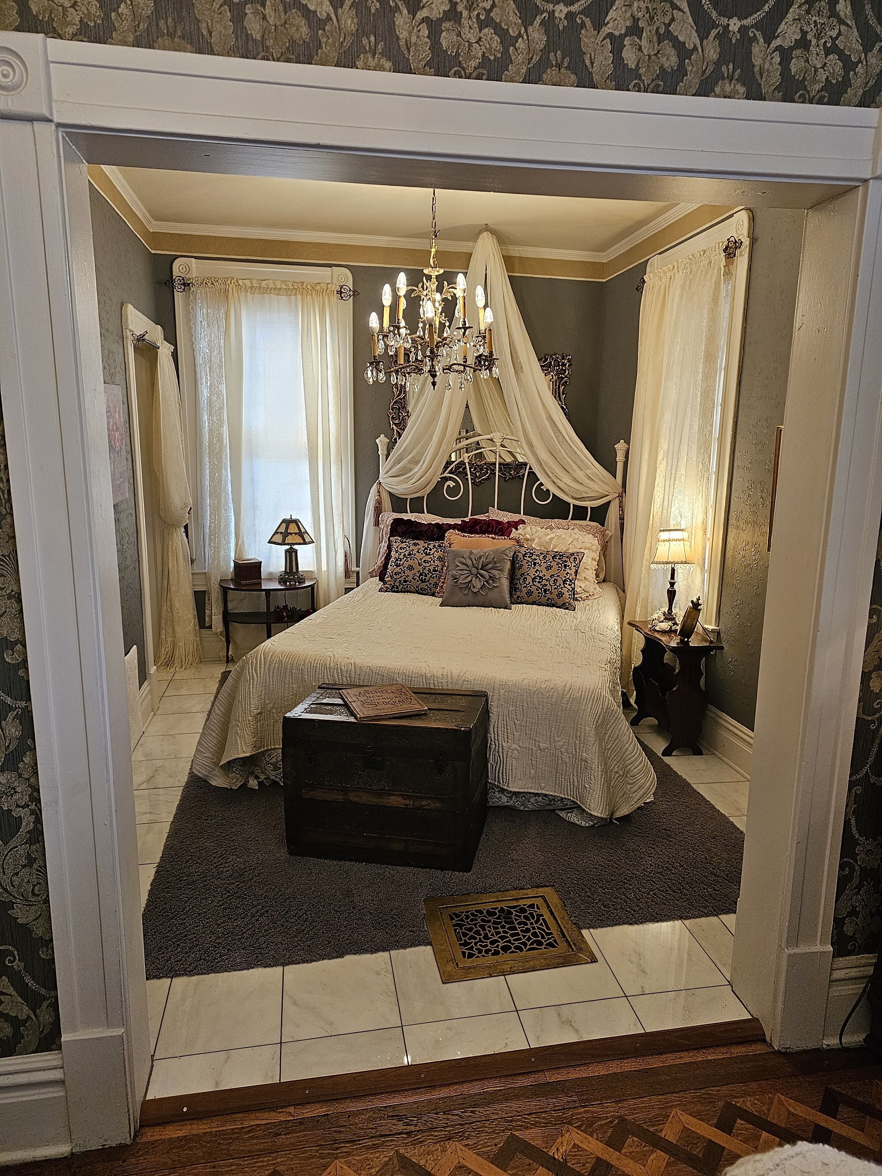 Beautiful hardwood floors, floral decor, and vintage touches make this a space you’ll remember. Rooms are spacious making it easy to spread out. Note the apartment is located on the second floor accessible by stairs.
