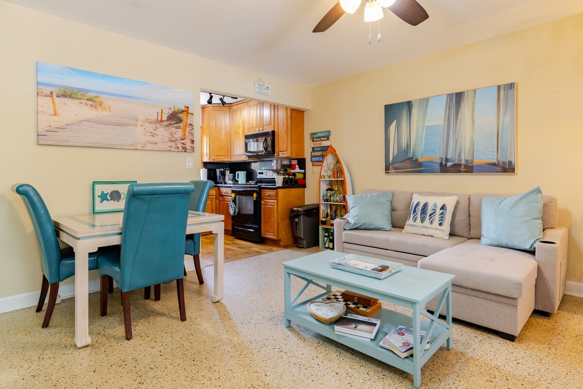 Patio: Step out to the patio area, the perfect spot to enjoy morning coffee, read a book in the fresh ocean breeze, or relax in the evening after a day at the beach.