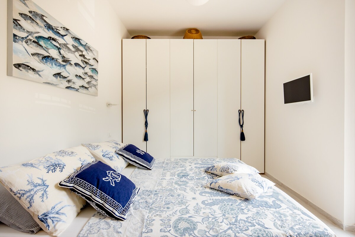 The apartment is on the ground floor and is accessed from a small terrace. The interior space is small, but functional and equipped with everything you need for a quiet and comfortable vacation (kitchen accessories, fridge with freezer, oven, wardrobe, chest of drawers, mirror, clothes hanger, laundry rack, bathroom with shower, pillows, blankets...).