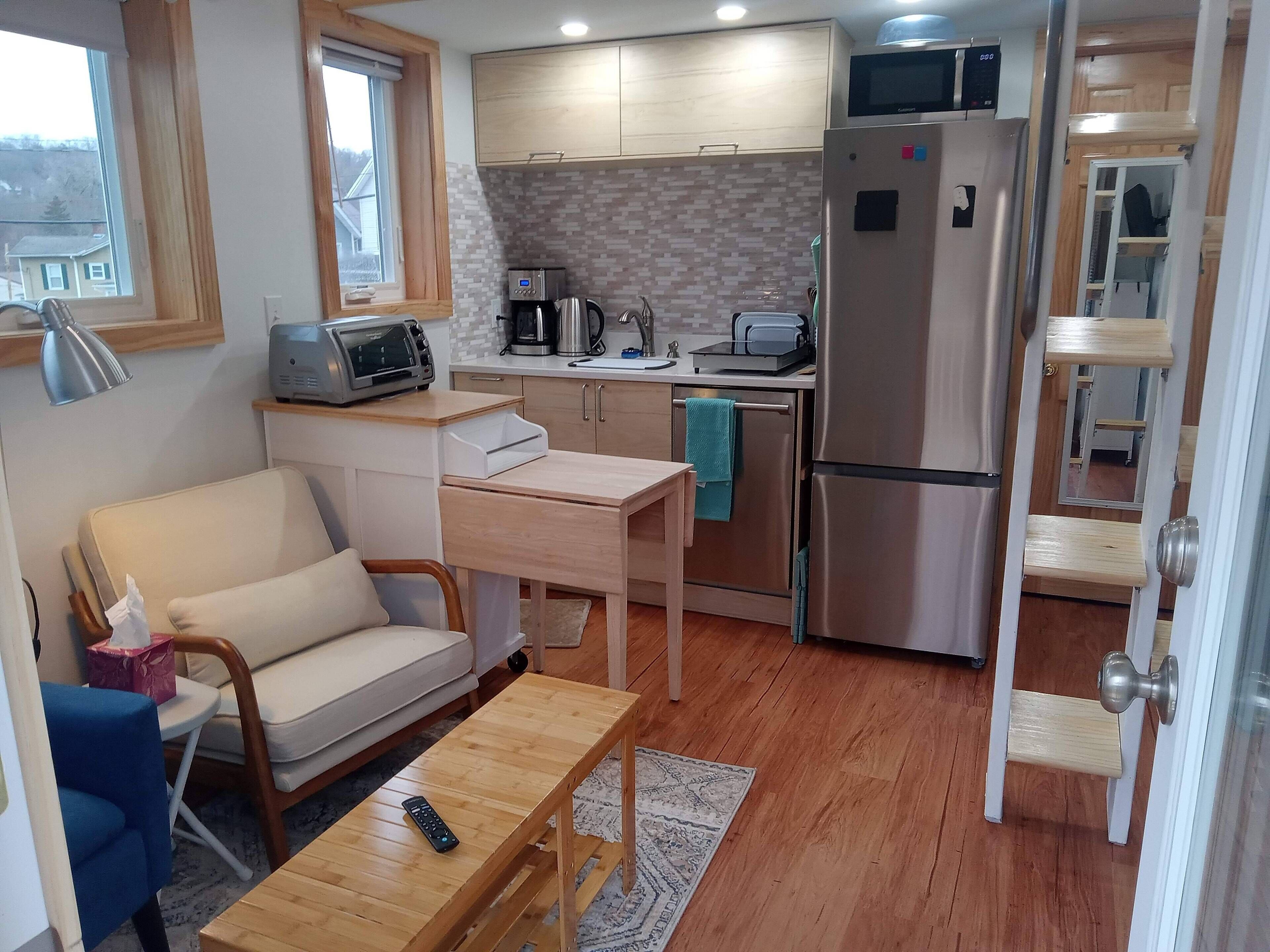 This is a true tiny house (on a foundation), with a sleeping loft, that offers everything you need to live in cozy comfort. It will become your sweet, private home away from home as you enjoy its charm, its modern and convenient features, and its bright, open space. Located in a very walkable city, close to amenities and services, area businesses, hospitals, universities, restaurants, and shopping, it is ideal for solo travelers coming to the area to explore, visit family, or for shorter term work opportunities.