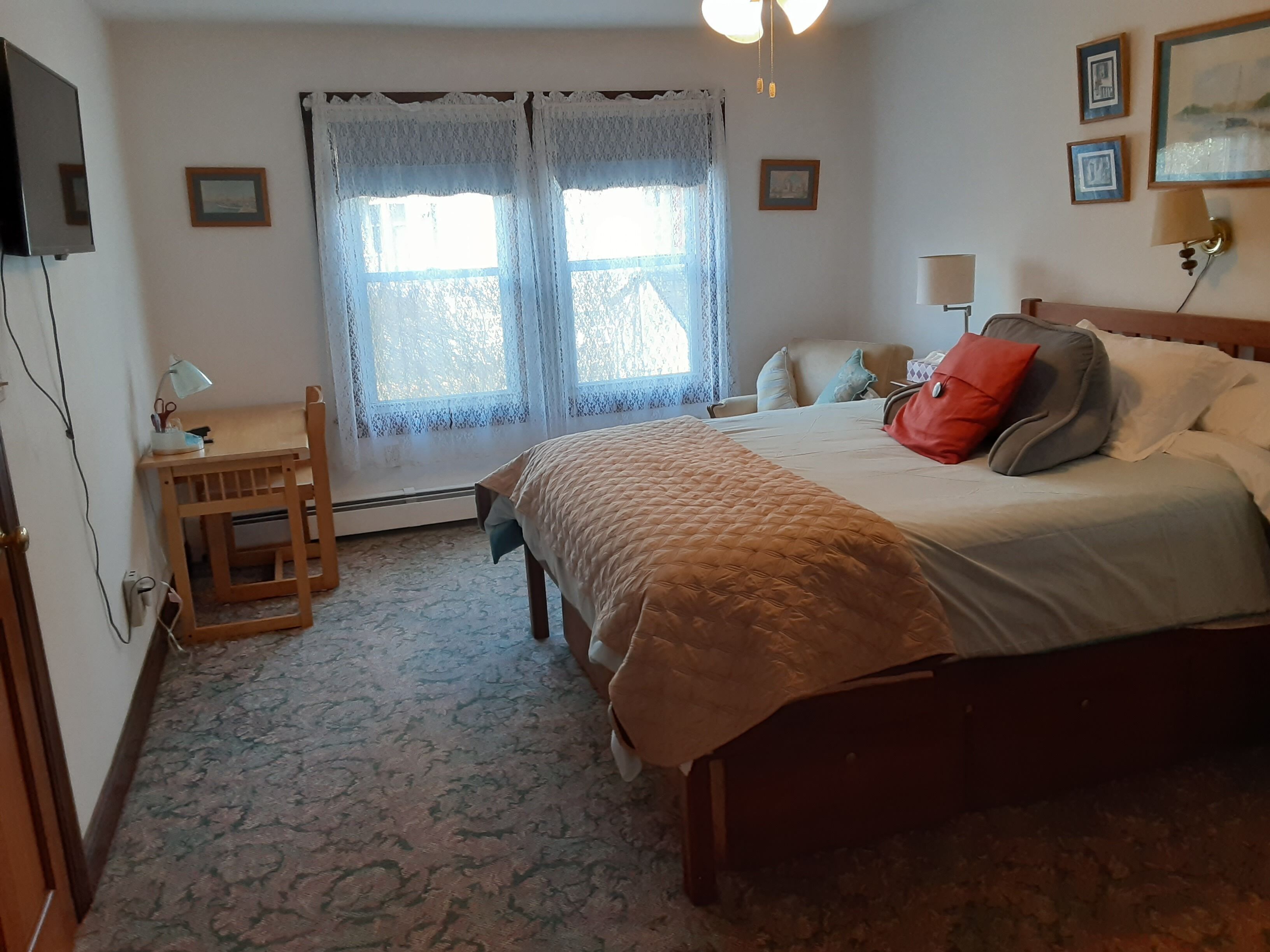 The apartment is bright and sunny, but has room darkening shades and curtains, when needed. It is equipped with all the conveniences of home to make your stay as comfortable and homey as possible.