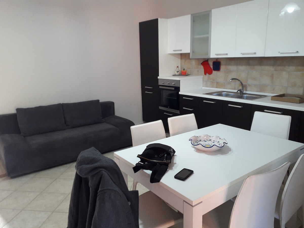 Apartment in a panoramic and suburban area. Urban center and sea reachable in 10 minutes. Equipped with garden, porch, living-dining room with full kitchen, one double bedroom, one bathroom and a sofa bed in the living area. Parking available.
