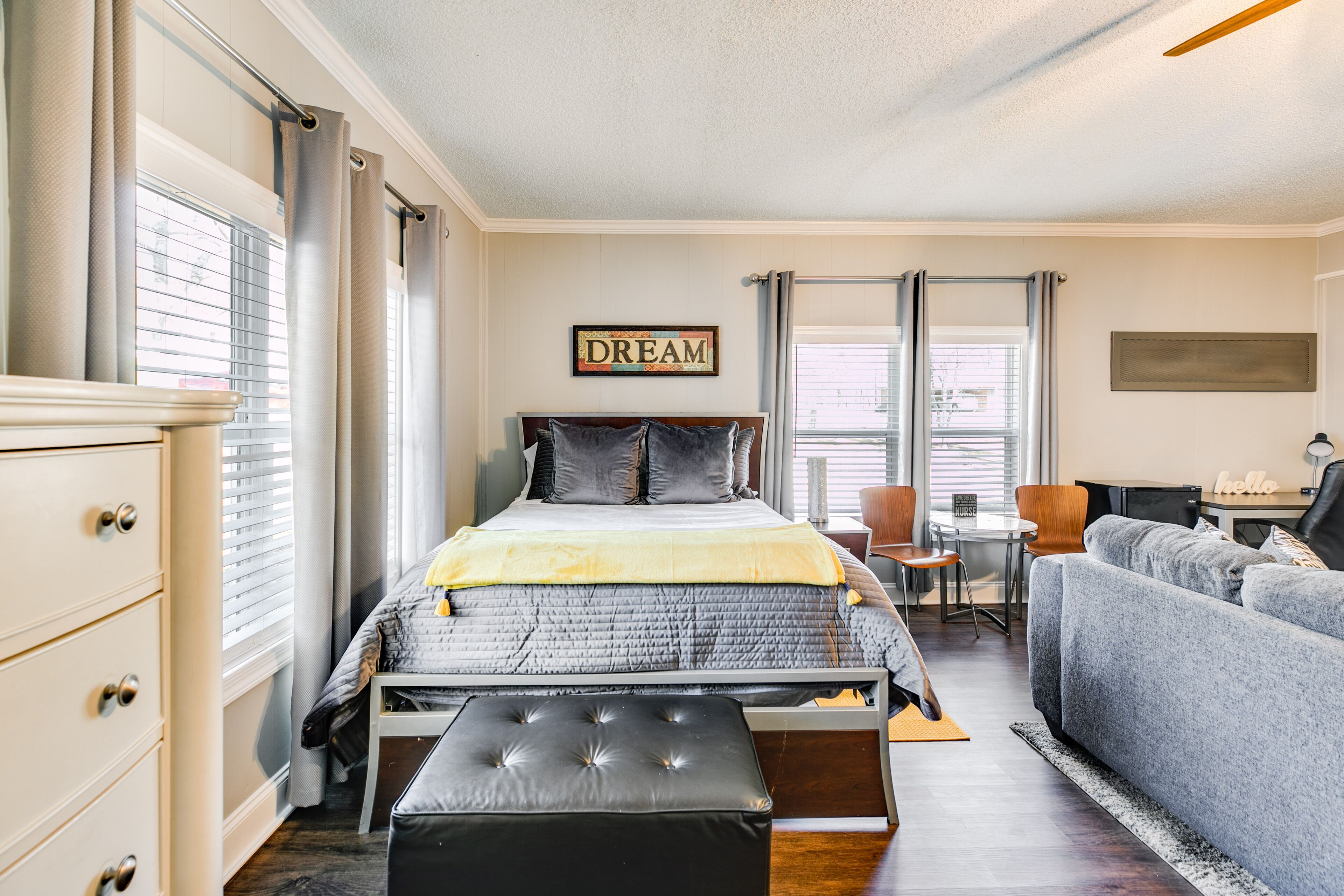 Unwind on the plush King bedding, enjoy custom details that elevate the everyday, and feel at ease in a space that’s both intimate and luxurious.