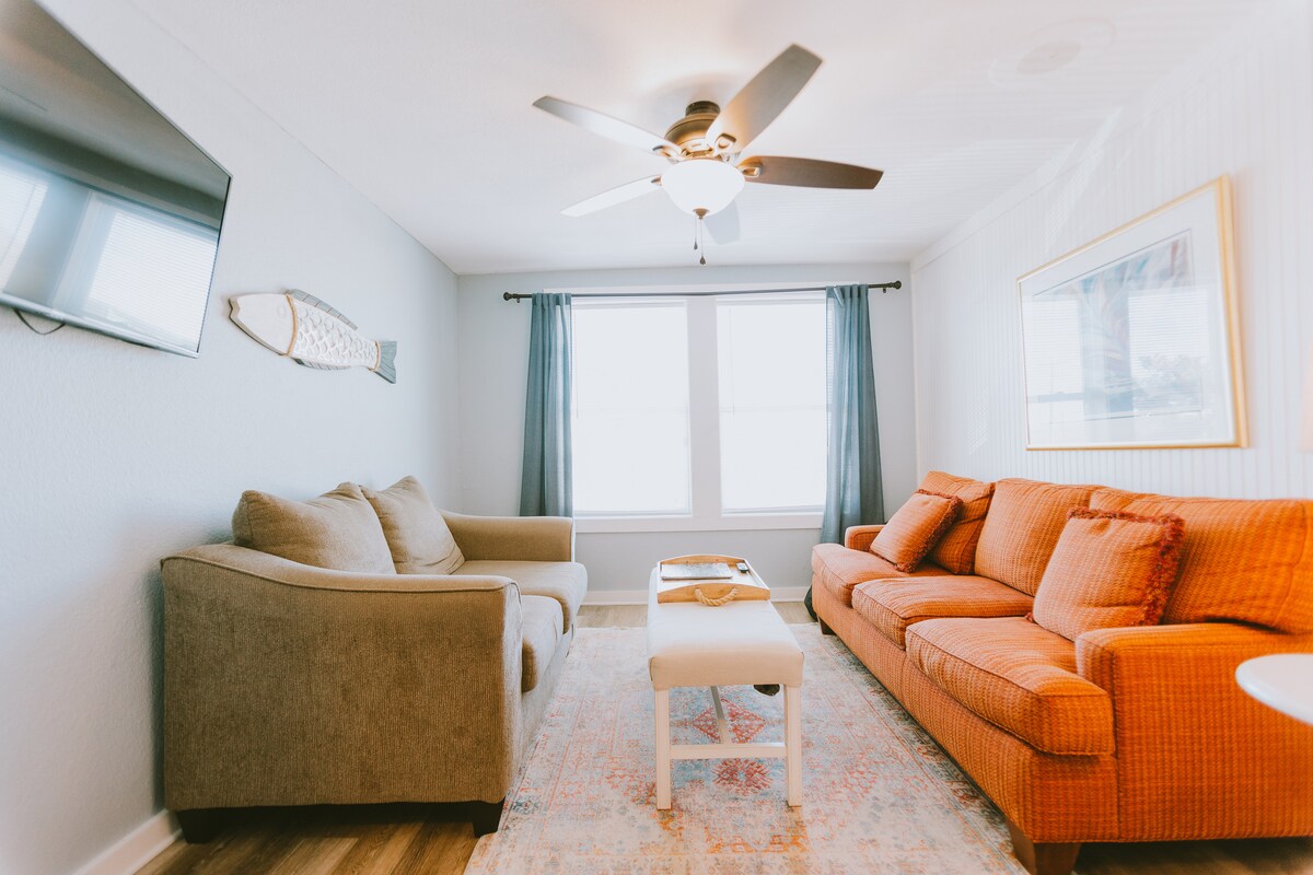 Super clean spaces and all new refreshing decor. The appliances are all new. Come relax near the beach with all modern up to date decor and amenities. We have a one bedroom option for two , if both rooms are not needed. We super fast WiFi! Also we use a ultraviolet light to help with cleaning. For golf cart rental ask we can help you with contacting someone.