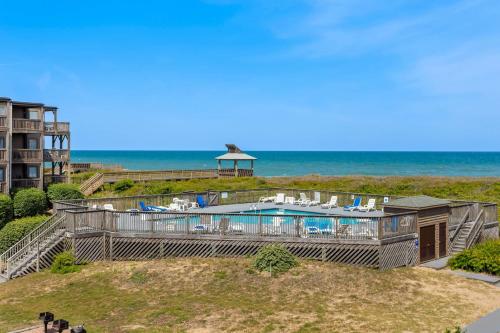 OCEANFRONT, 3rd fl. condo in the heart of Duck, NC is just minutes from the beach, shops, restaurants and public bike paths in this charming town. New flooring, appliances, fully stocked kitchen, and comfortable bedding compliment this vacation retreat! Amenities include a community pool, dune top deck, and community boardwalk to the beach. Comfortable and spacious living area for 5. Large 10X14 deck great for enjoying morning coffee relaxing. Tennis, pickle/basket ball and Playground for kids.