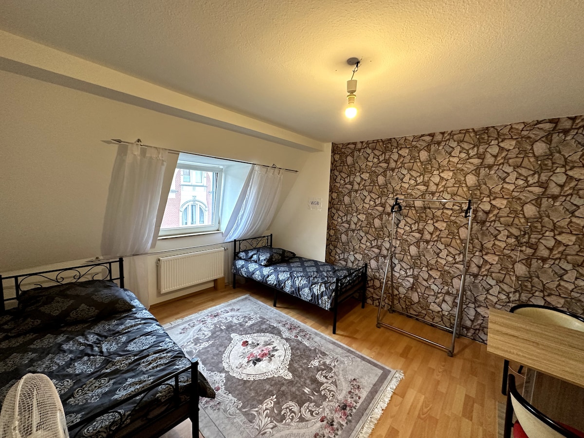 Quiet room* in a beautiful, spacious old building apartment in the immediate vicinity of the main train station. Room is furnished with second level, into which a bed is built. Kitchen, living room, dining room, bathroom are shared with the host. Rent including shared living space gladly longer, if necessary under 1 month. The apartment is located in a lively district with lots of dining and nightlife options.